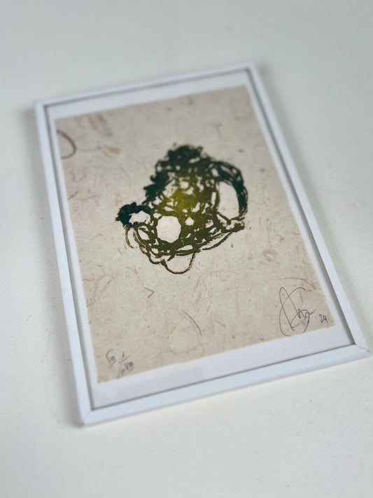 DécouvrirLes estampes de nouages sont réalisées à partir de l'impression d'ouvrages noués en fibres naturelles. Chaque empreinte révèle le geste lent du lien et la trame dessinée par la fibre.