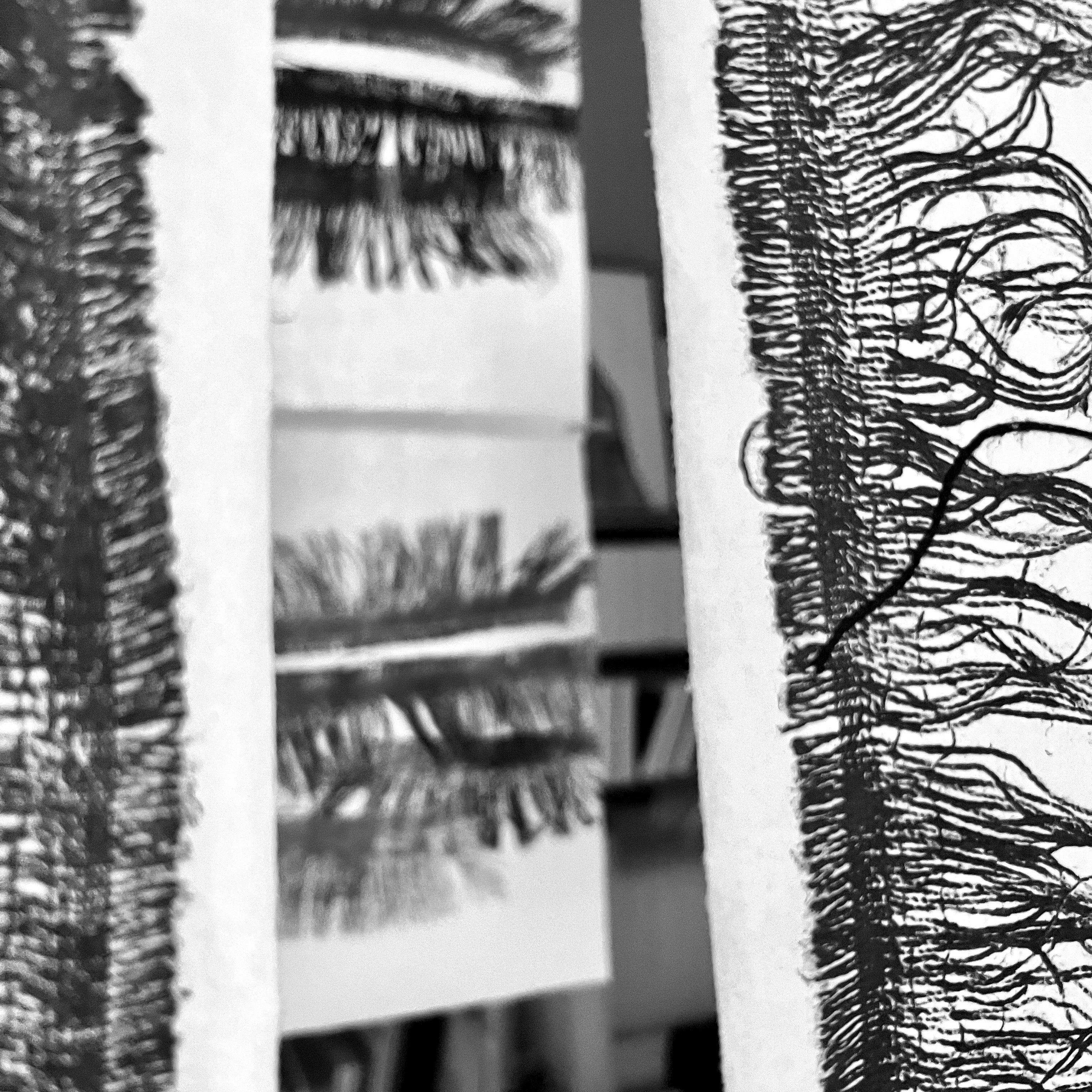 DécouvrirLes tressages d'estampes sont réalisés à partir des estampes découpées puis tressées entre elles. C'est une relecture de la trame imprimée qui en propose une nouvelle narration visuelle.