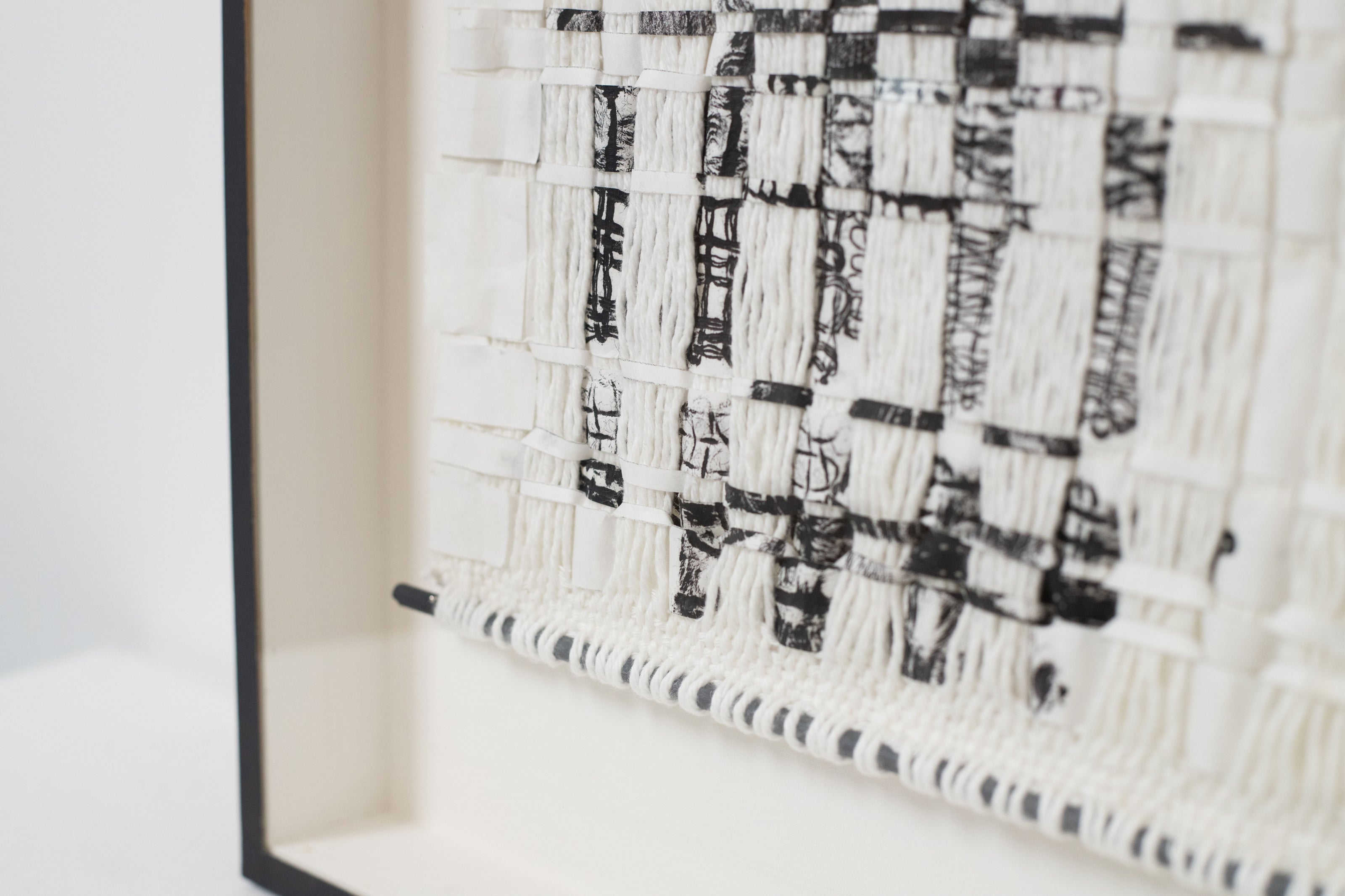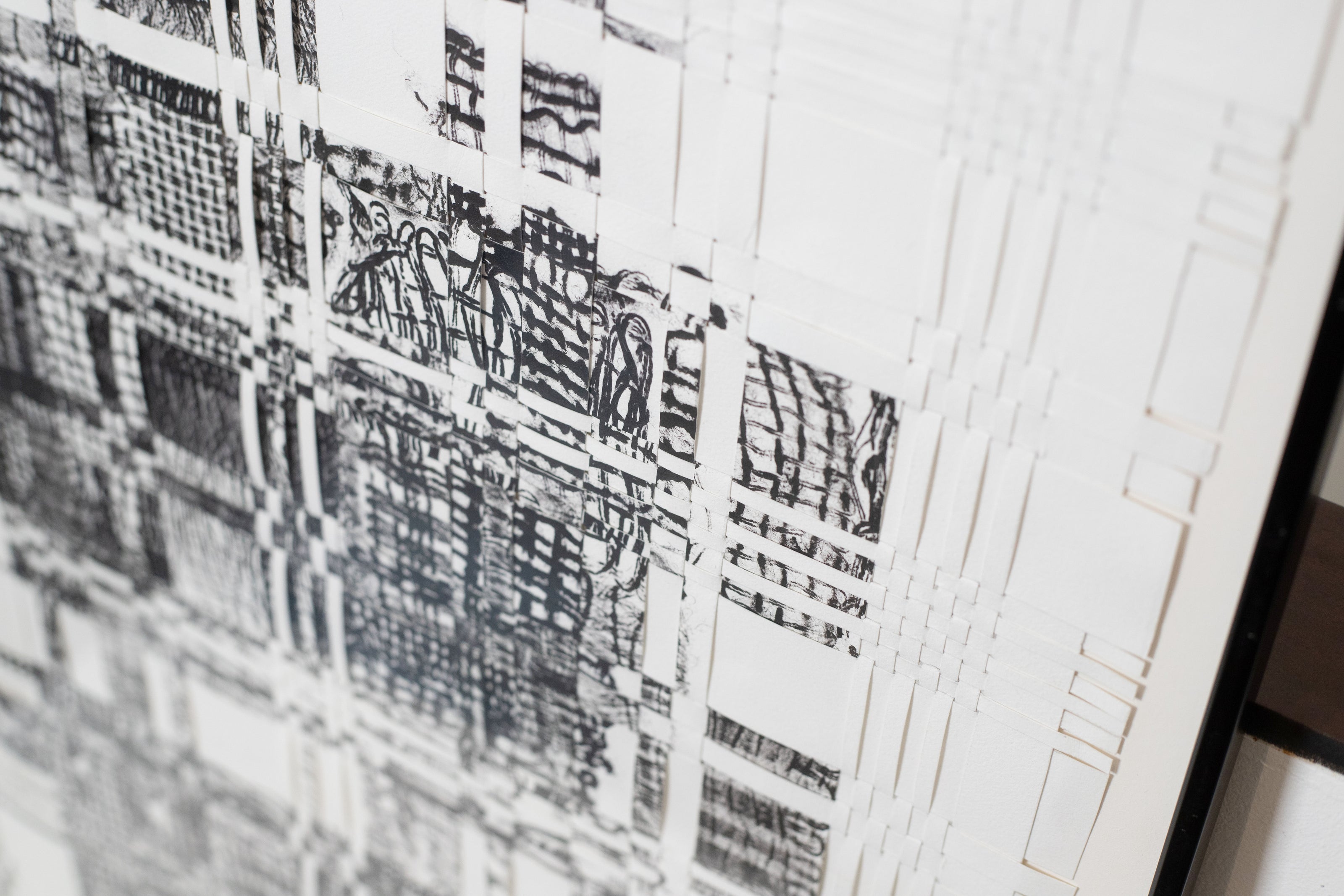 DécouvrirLes tressages d'estampes sont réalisés à partir des estampes découpées puis tressées entre elles. C'est une relecture de la trame imprimée qui en propose une nouvelle narration visuelle.