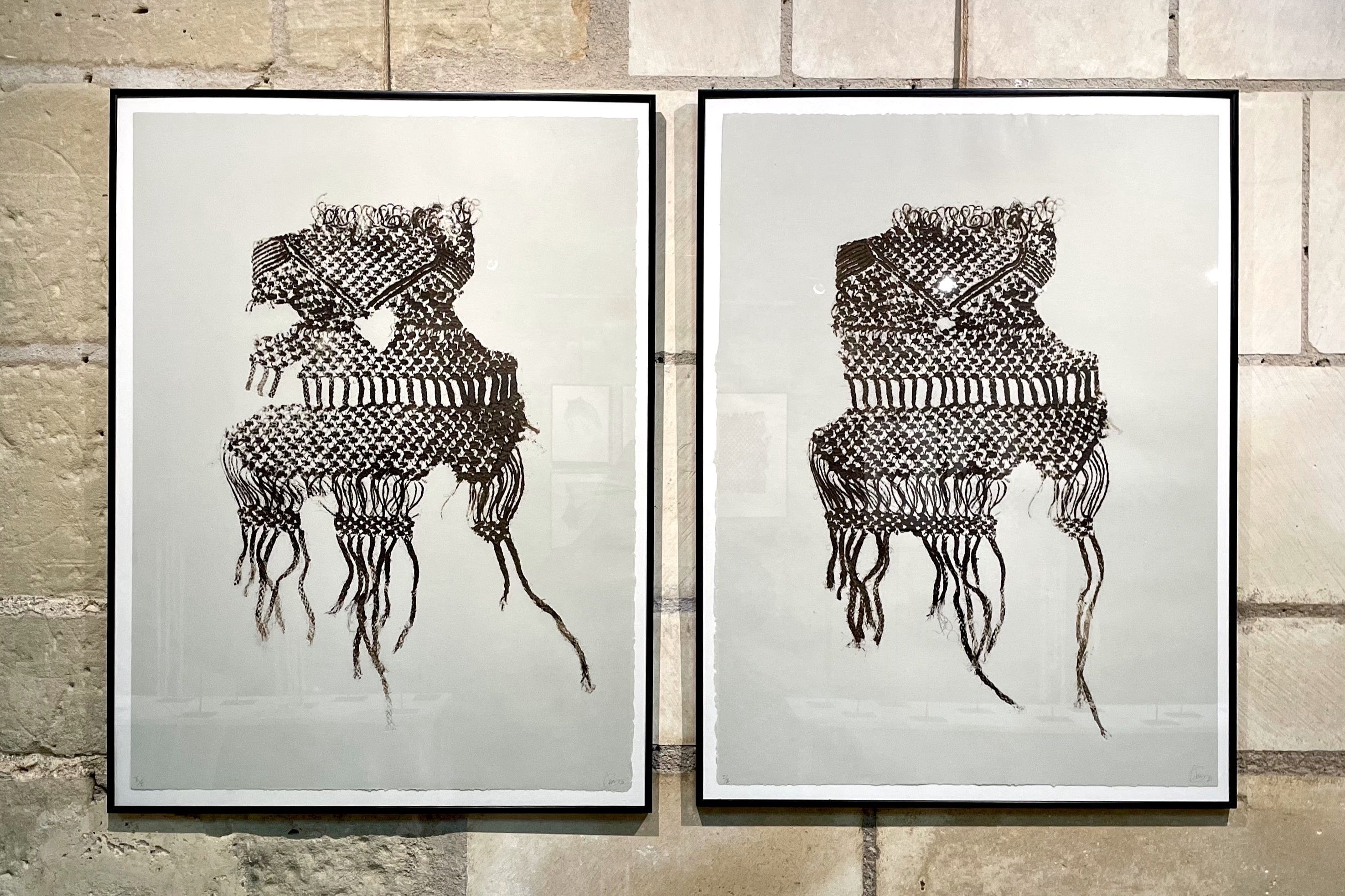 J’ai commencé à estamper mes ouvrages en fibres avant tout parce que je voulais trouver ce point de rencontre entre deux expressions qui s’étaient inscrites en moi : le tissage et l’estampage. C’est à ce moment que mes ouvrages de fibres se sont transformés en matrices endossant alors ce rôle d’outil, un objet dont l’unique fonction est de révéler son empreinte sur le substrat.