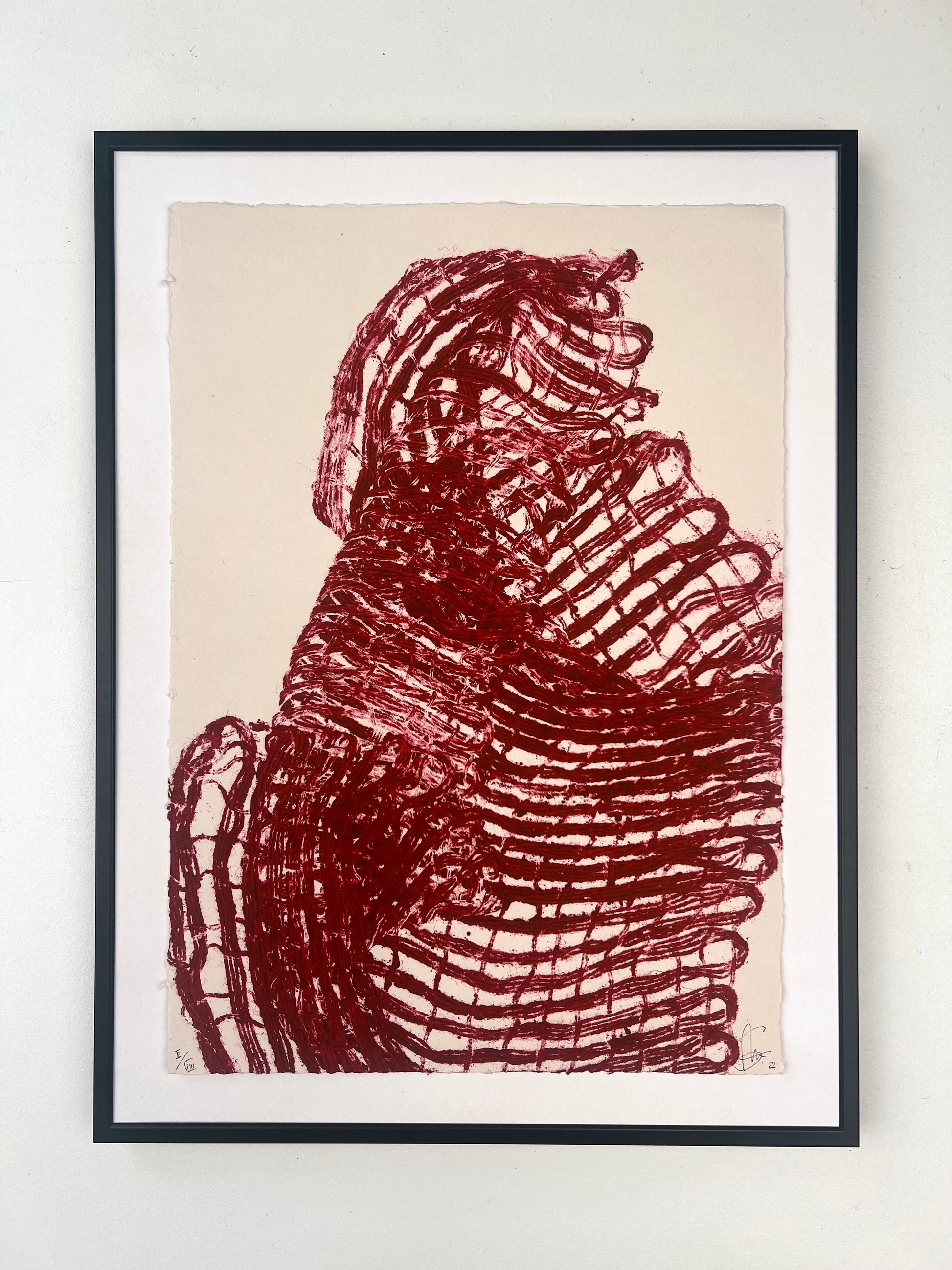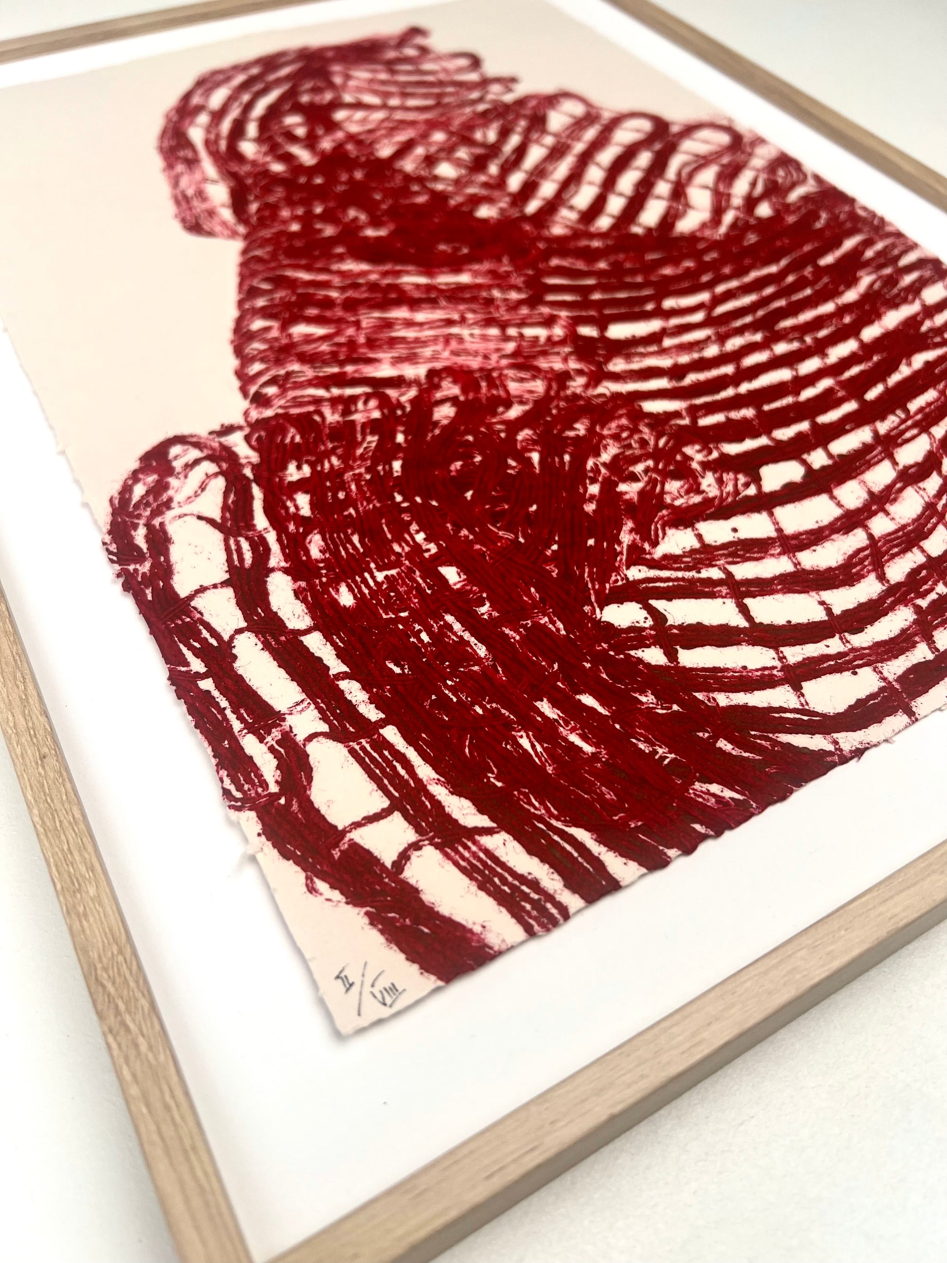 Estampes d'une matrice en fibres de coton tissées enduite de plusieurs encres d’impression et passée sous presse sur un papier Fabriano Rosaspina de 280g