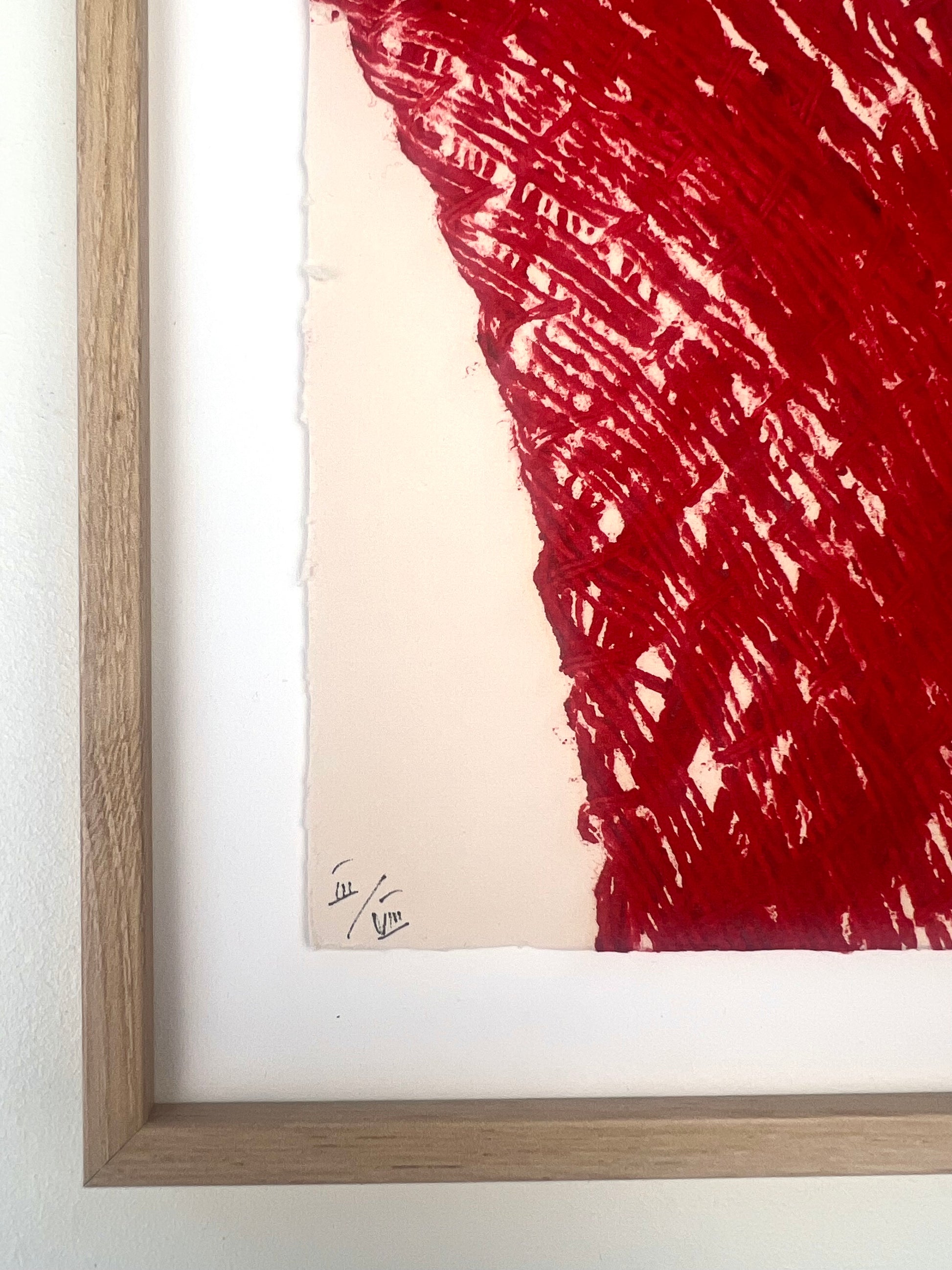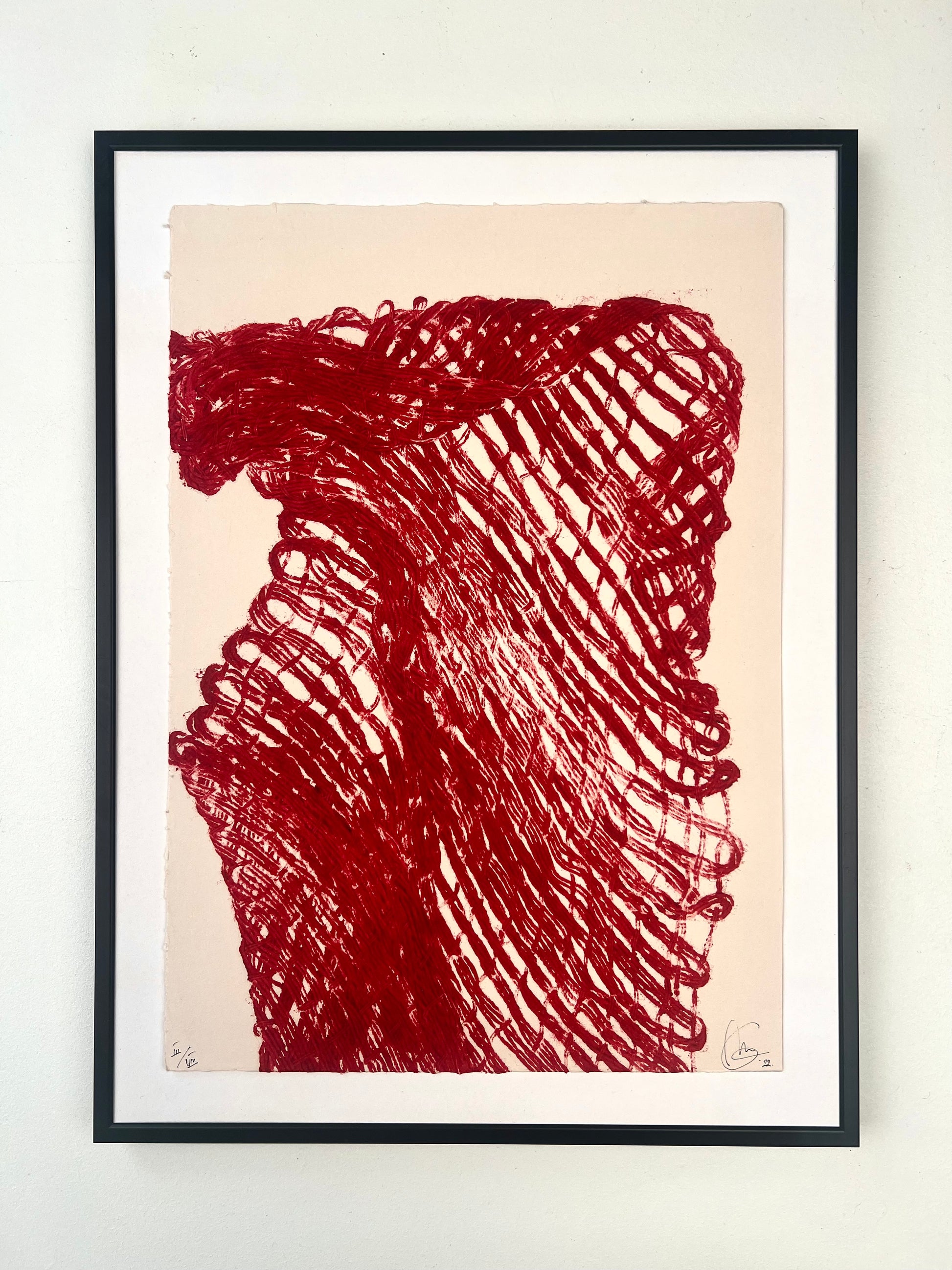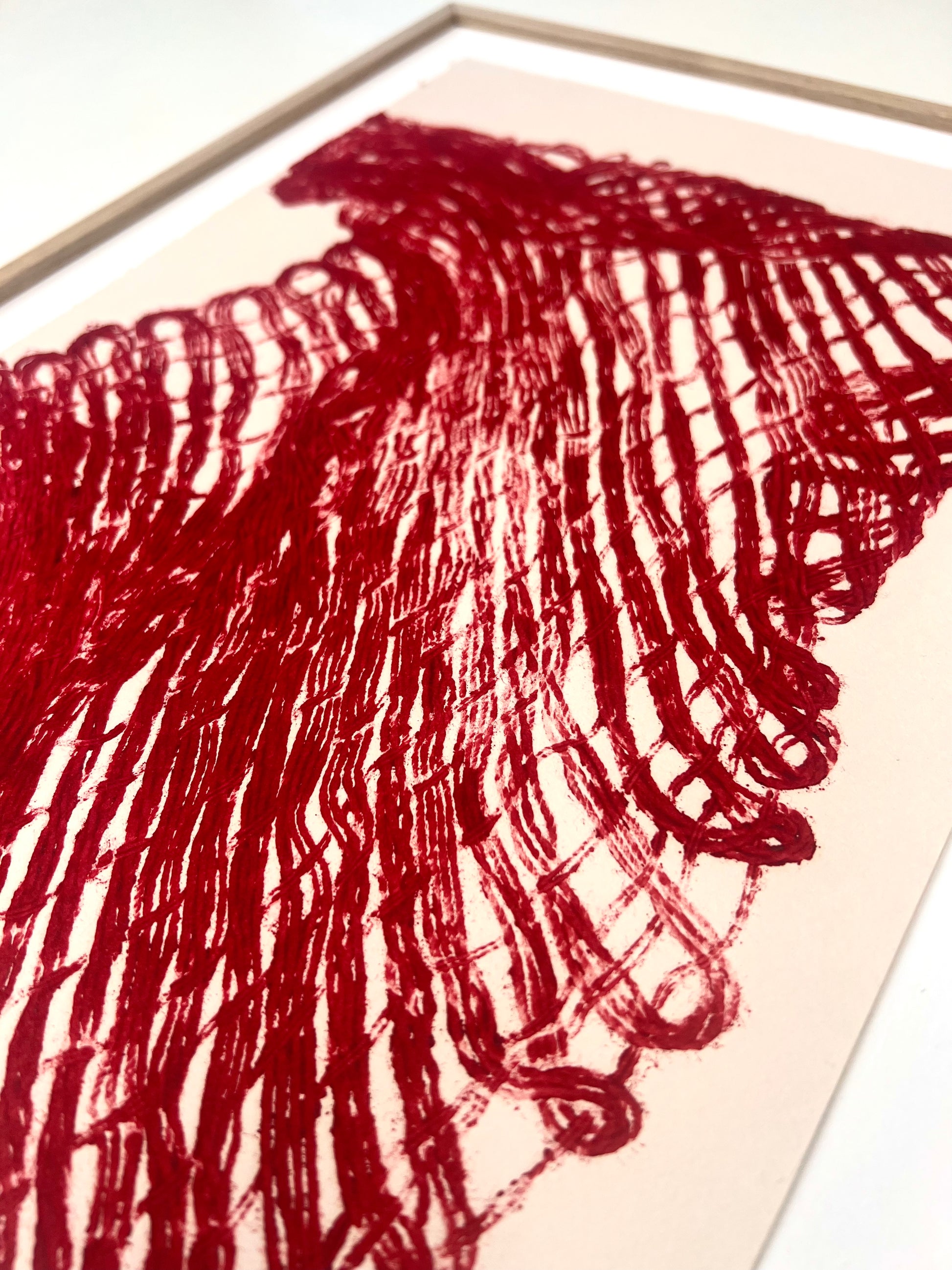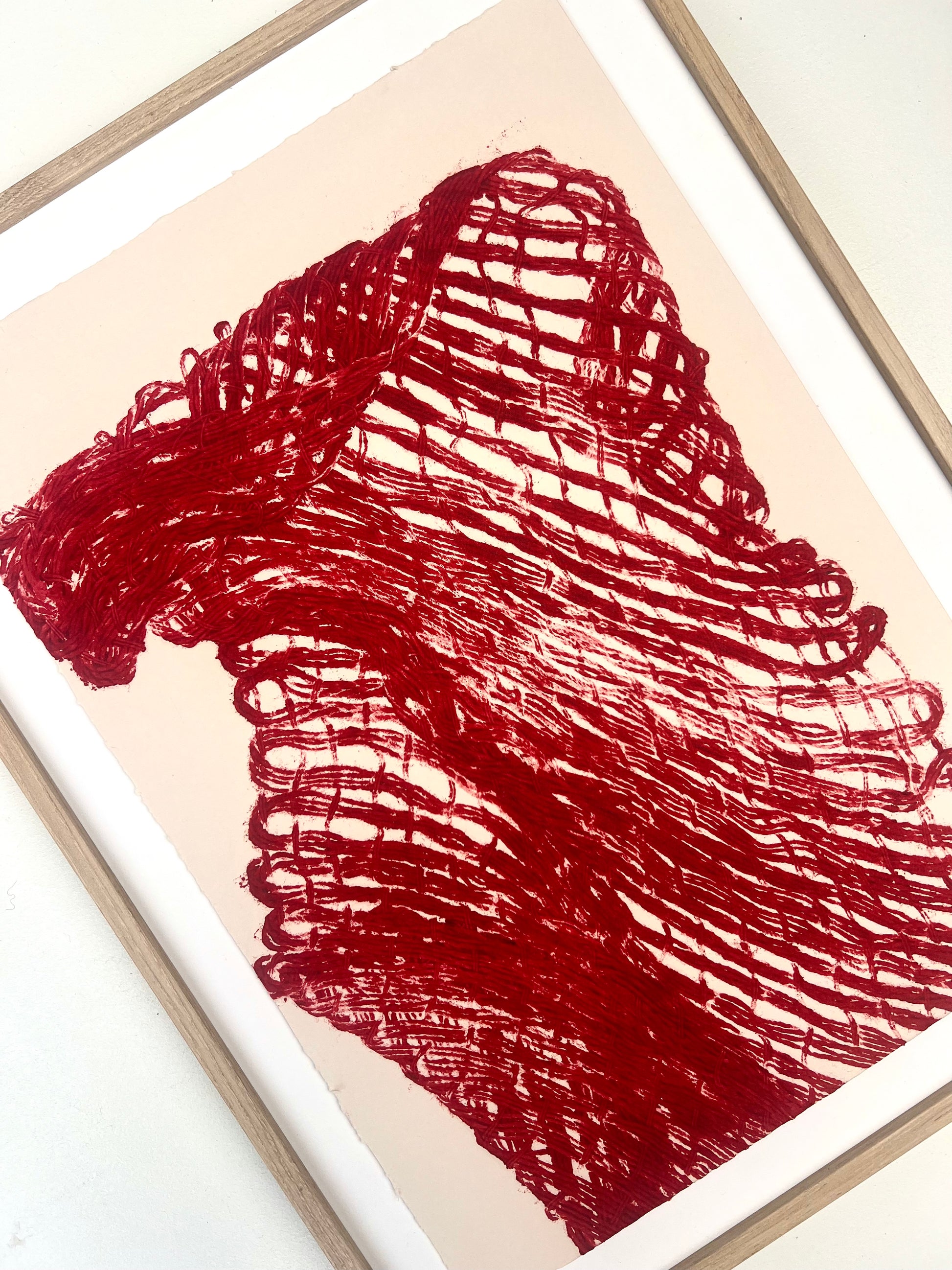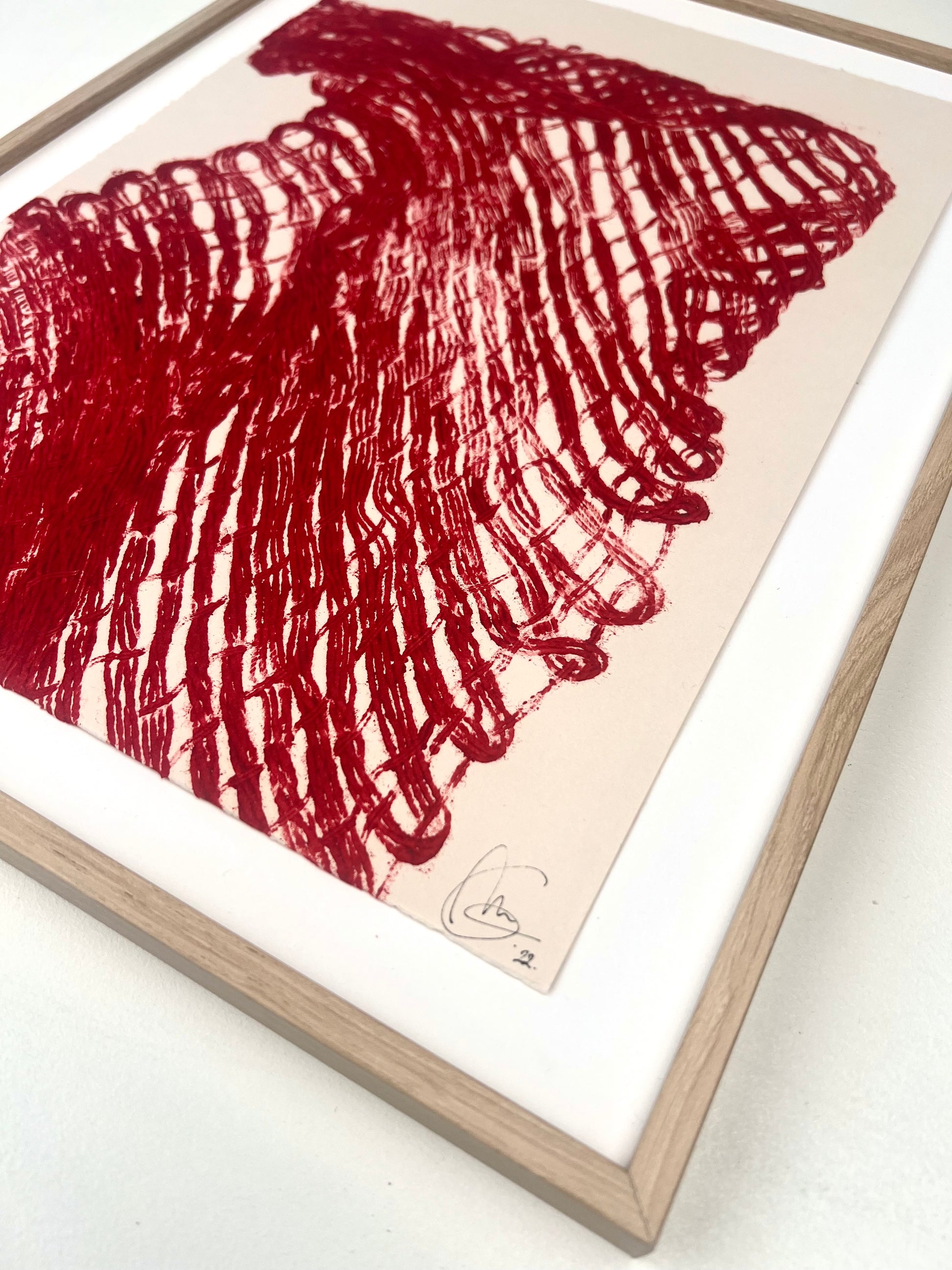 Estampes d'une matrice en fibres de coton tissées enduite de plusieurs encres d’impression et passée sous presse sur un papier Fabriano Rosaspina de 280g