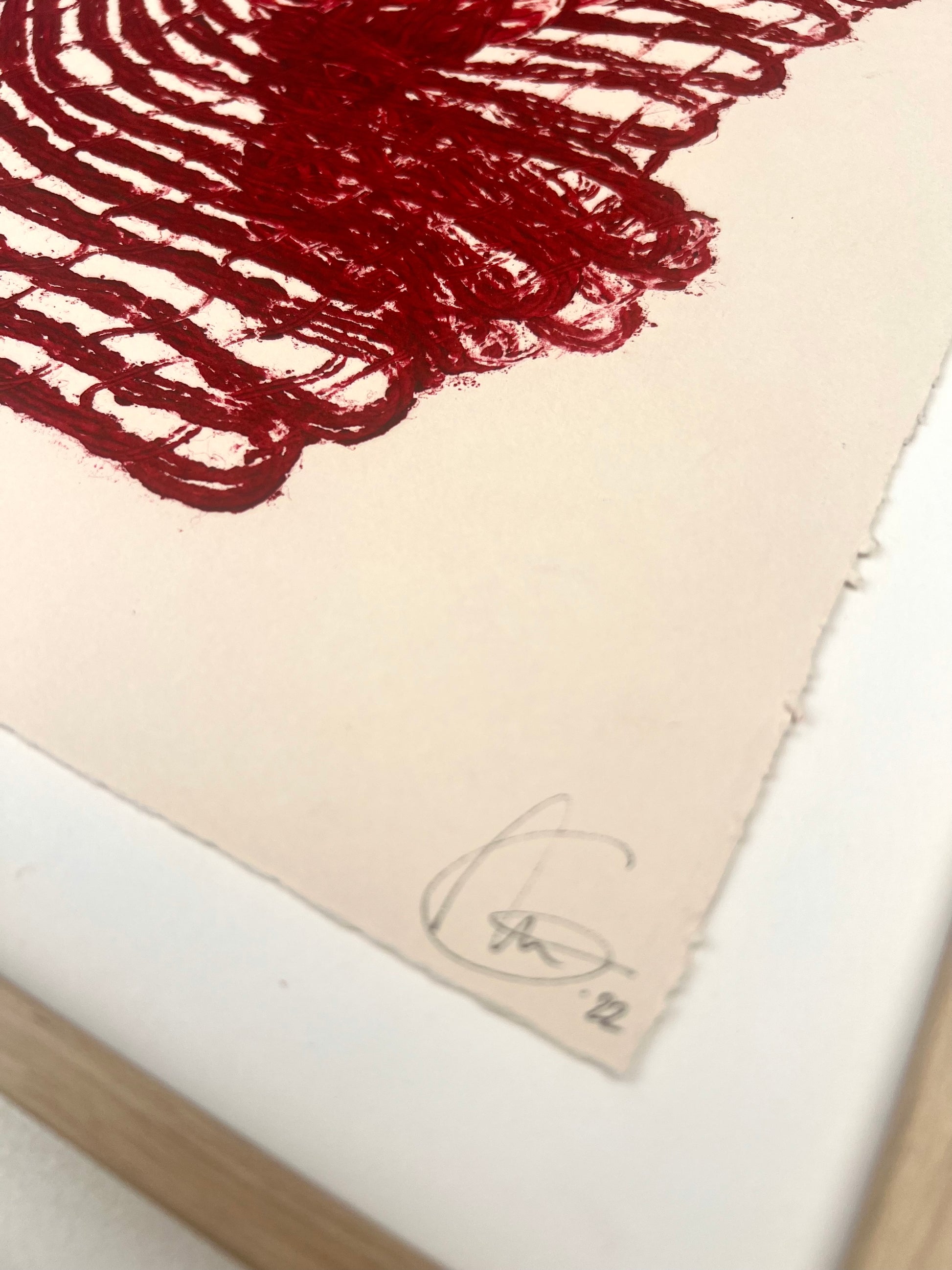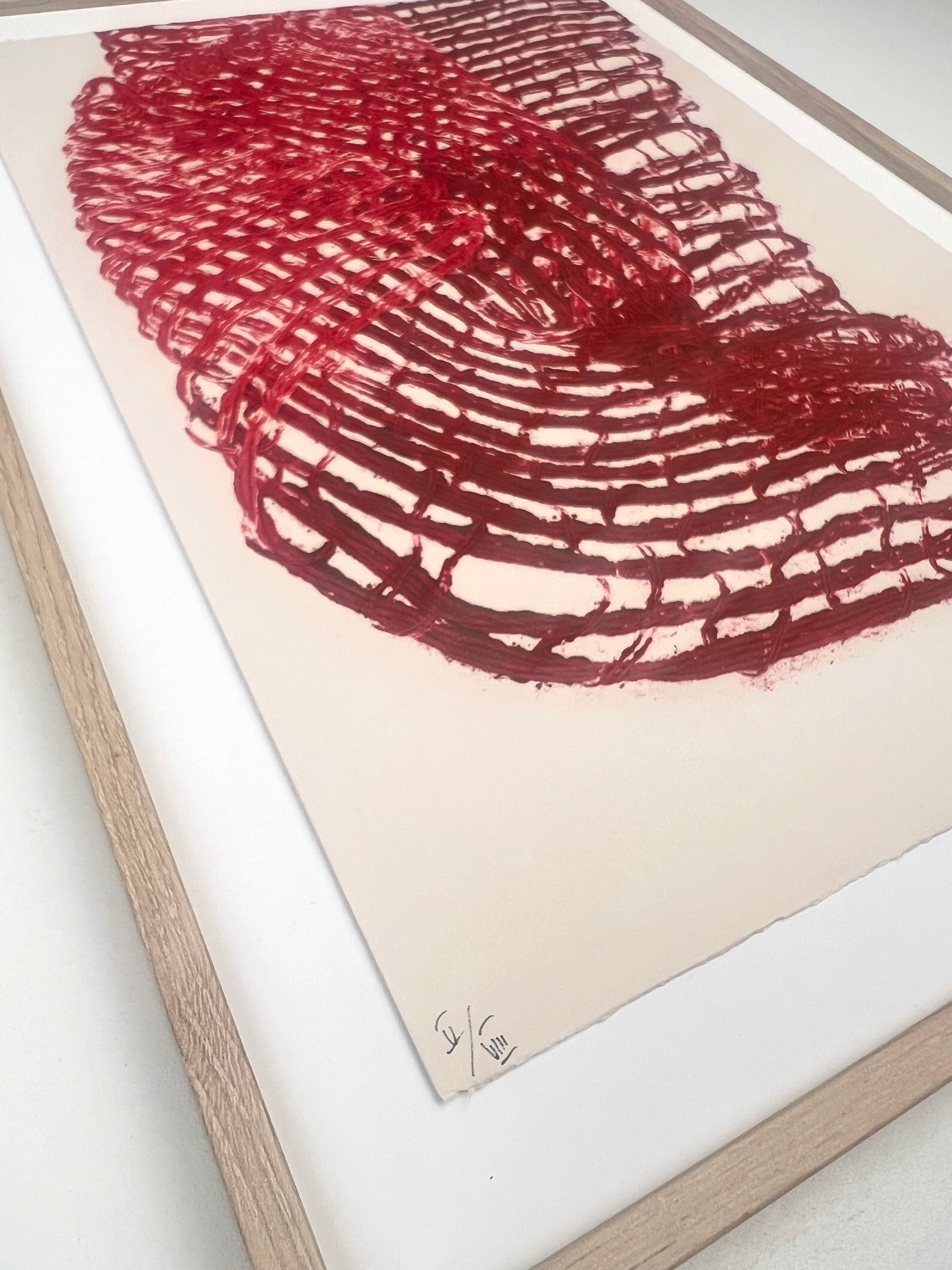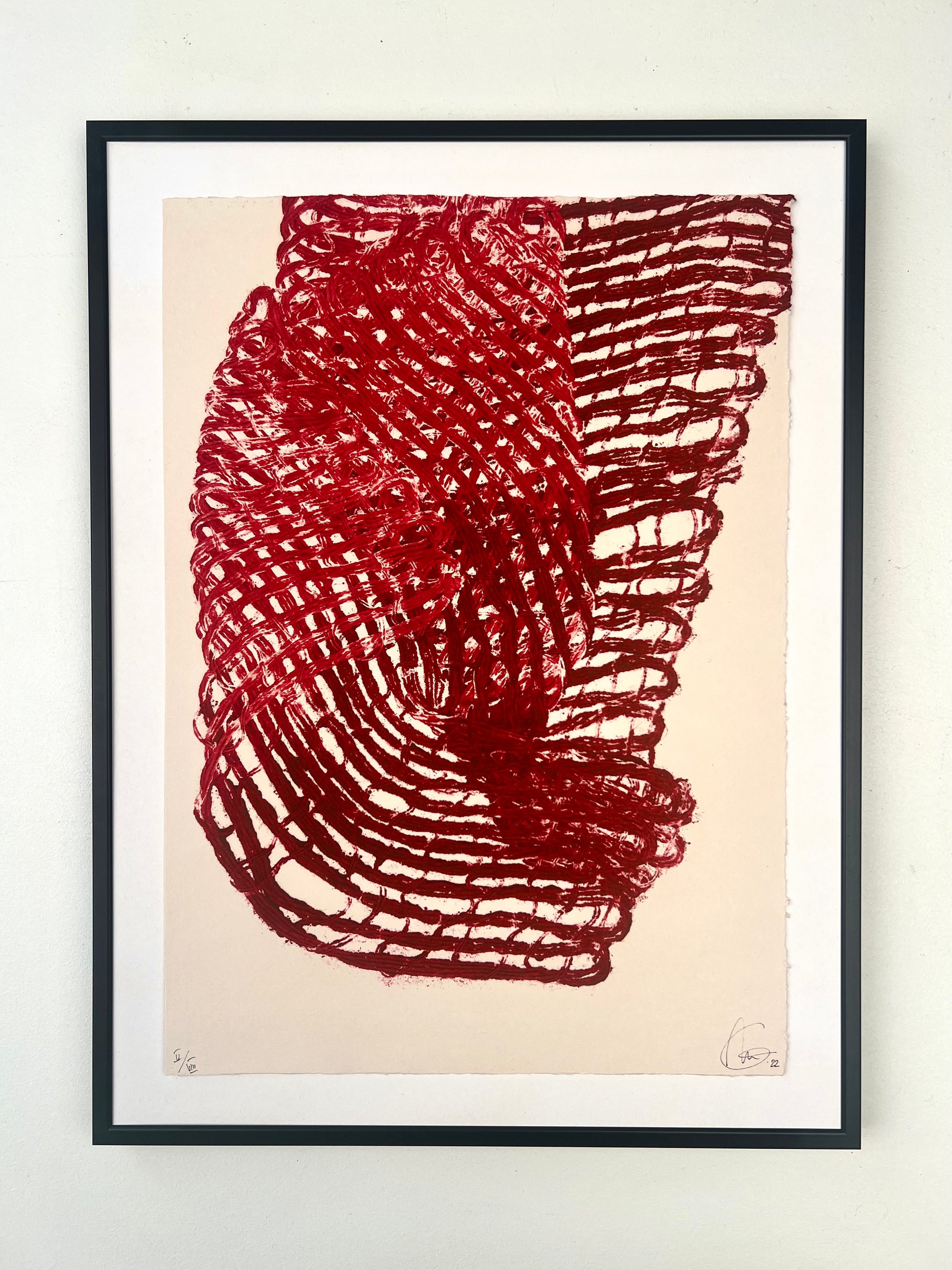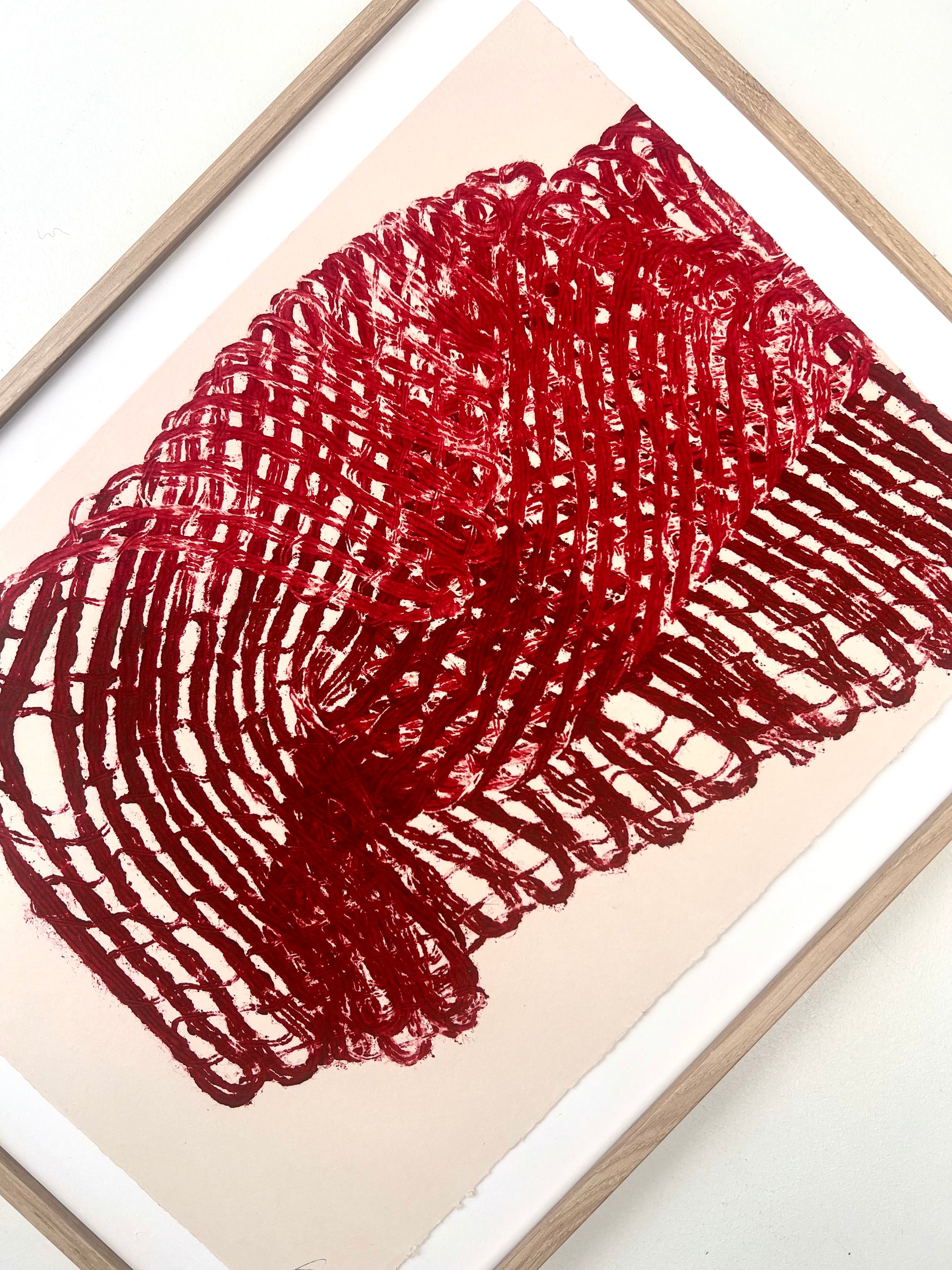 Estampes d'une matrice en fibres de coton tissées enduite de plusieurs encres d’impression et passée sous presse sur un papier Fabriano Rosaspina de 280g