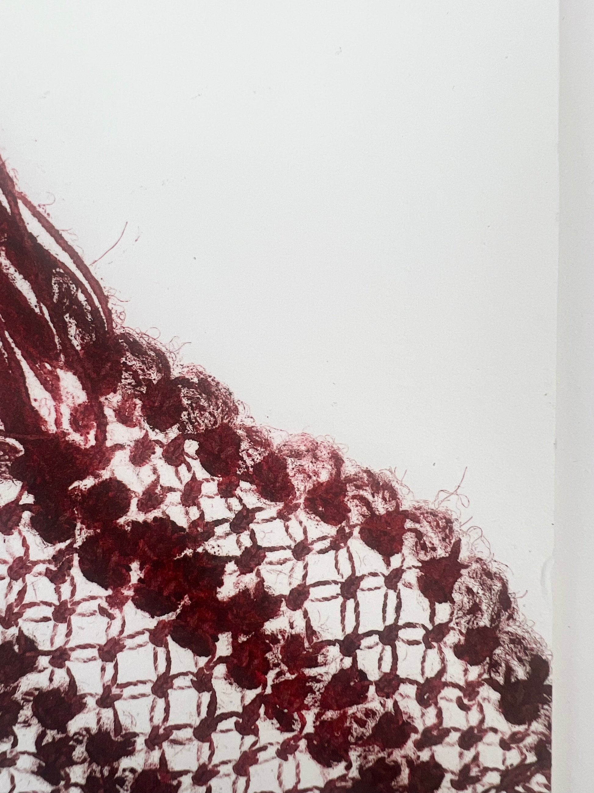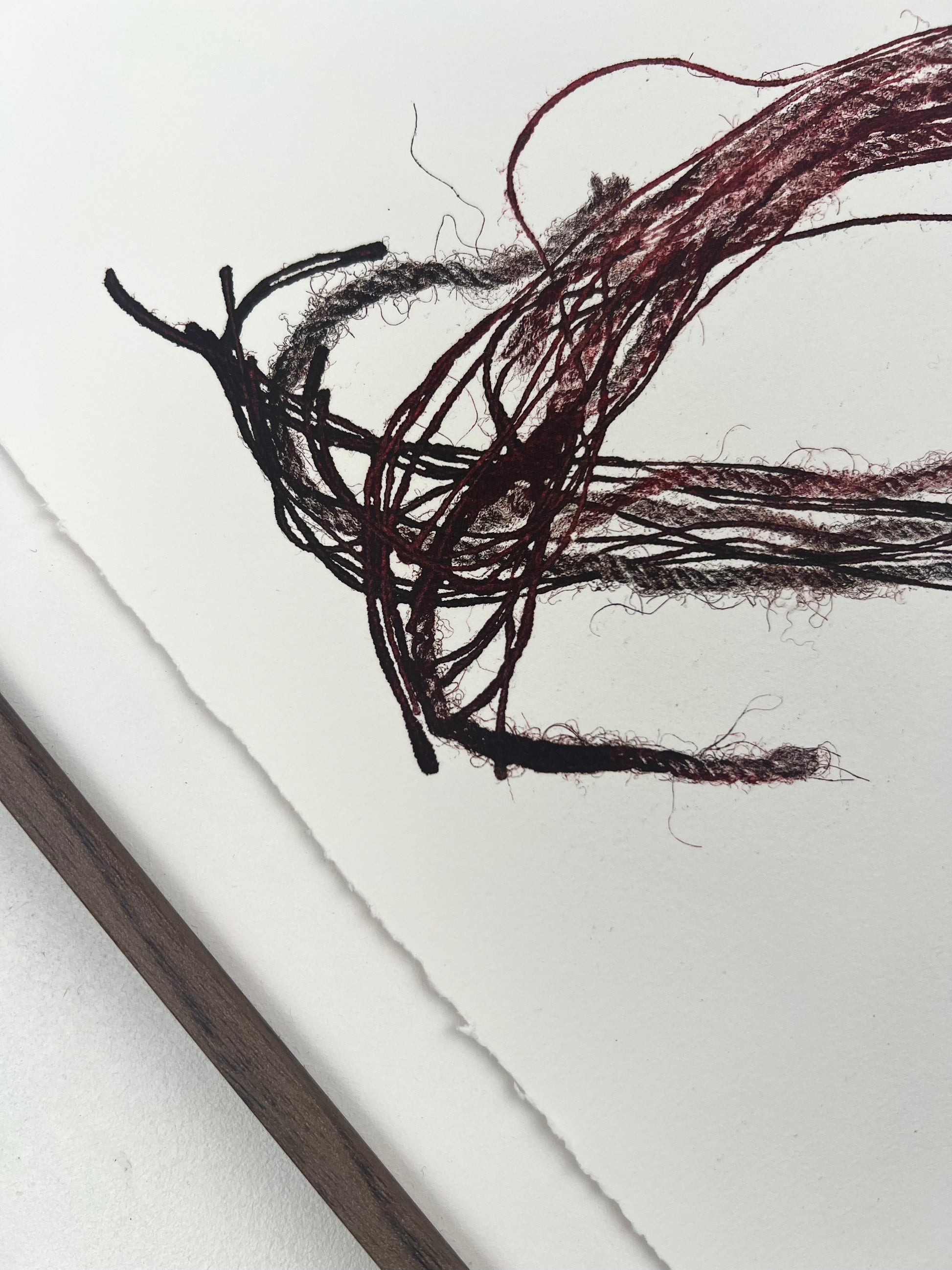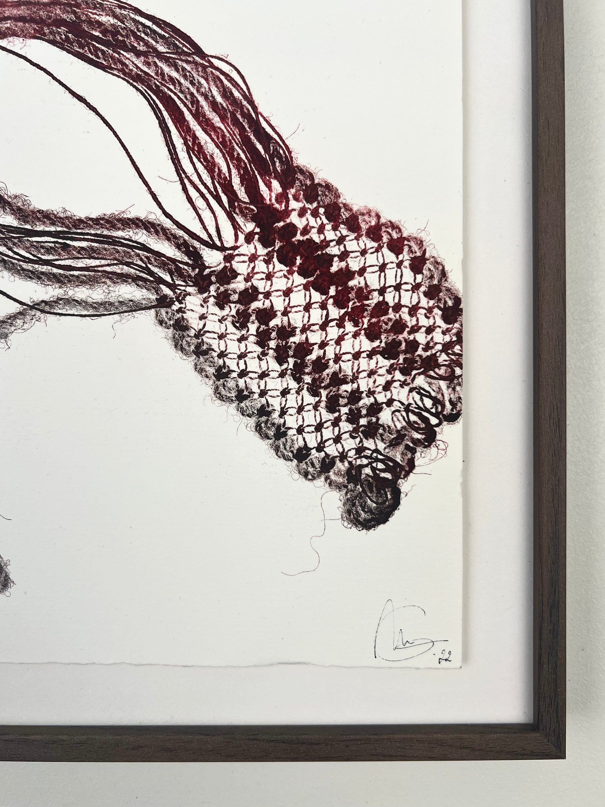 Estampes d'une matrice en fibres de lin nouées enduite de plusieurs encres d’impression et passée sous presse sur un papier Velin d’Arche ivoire de 300g