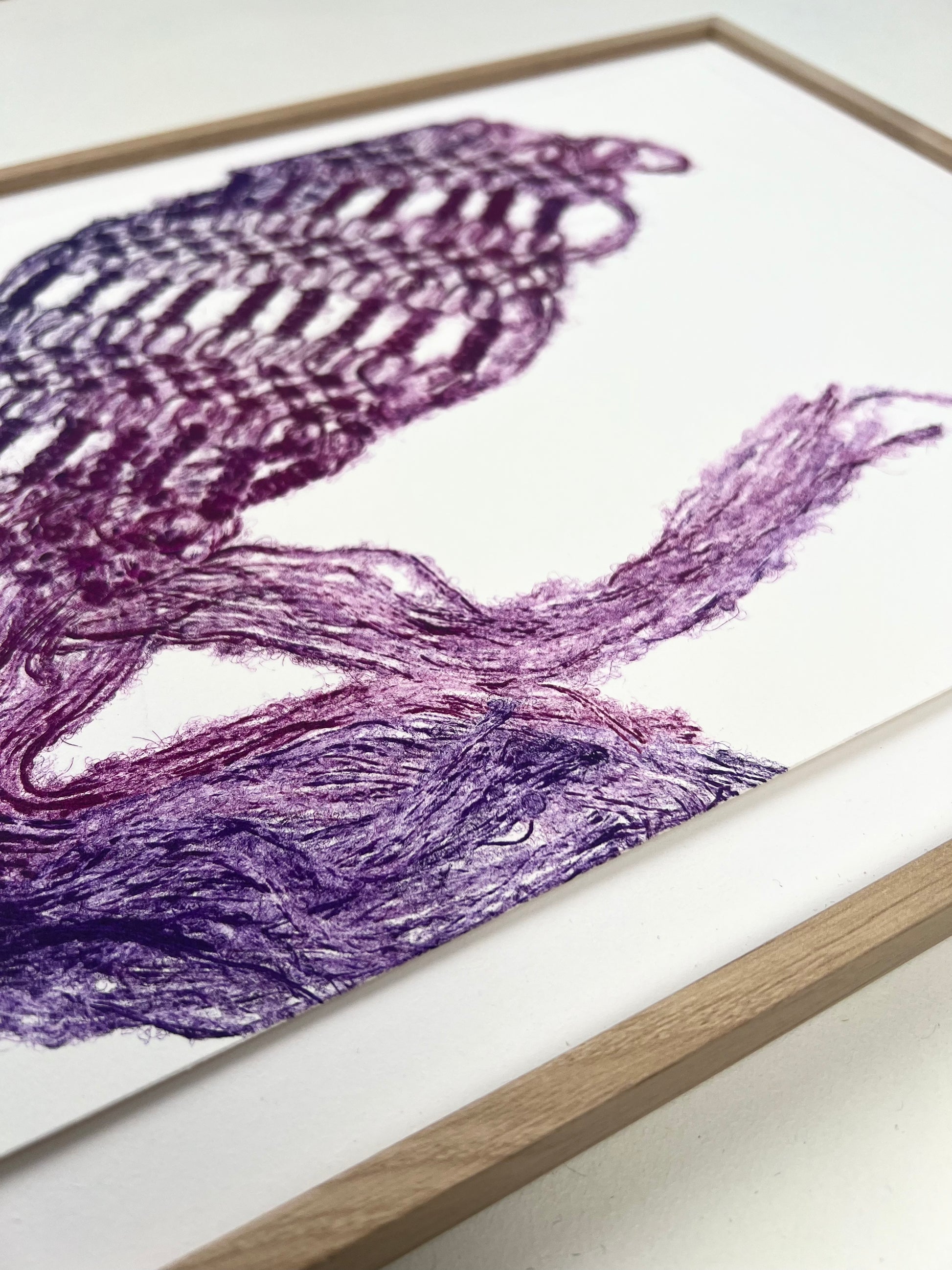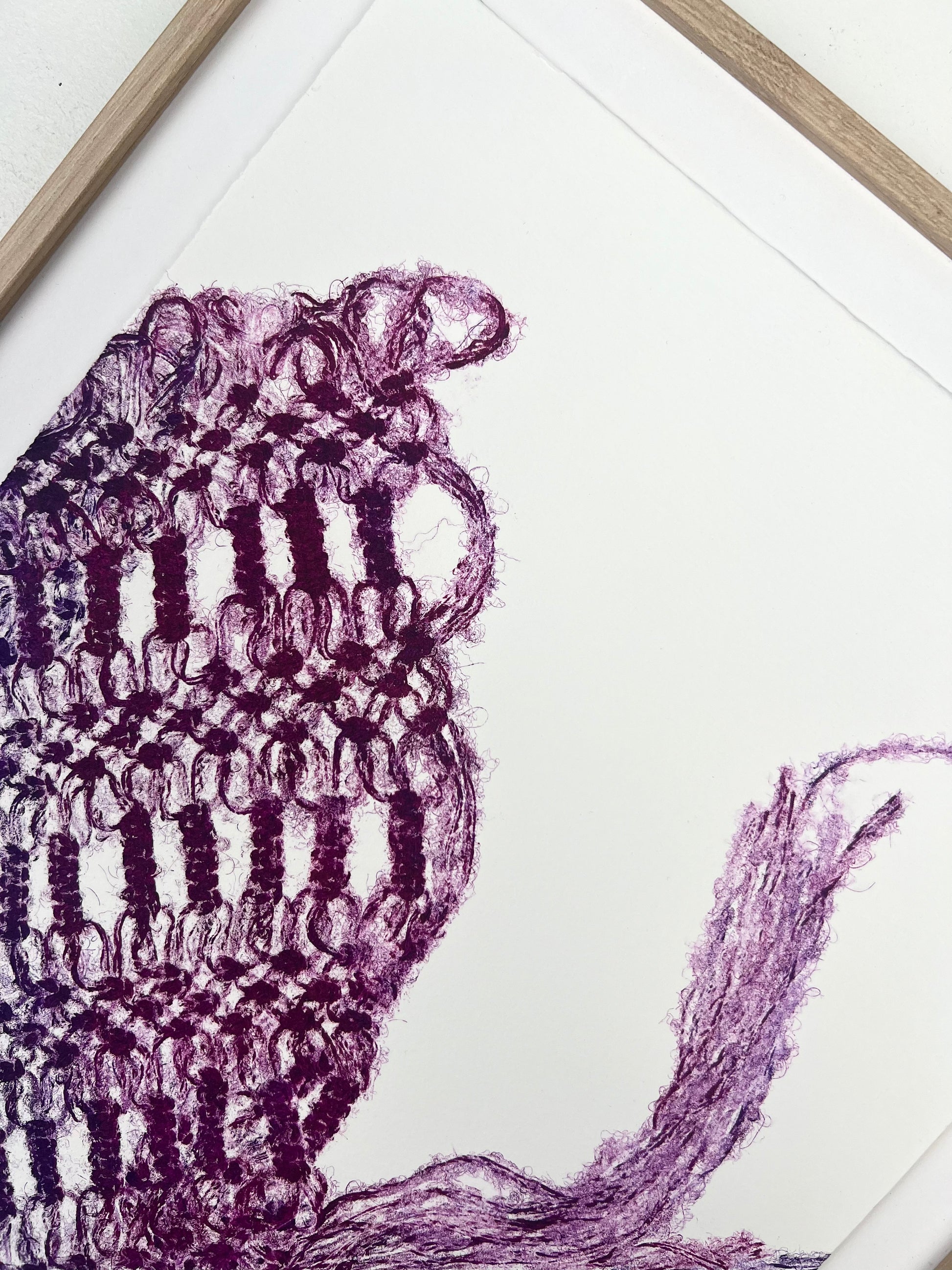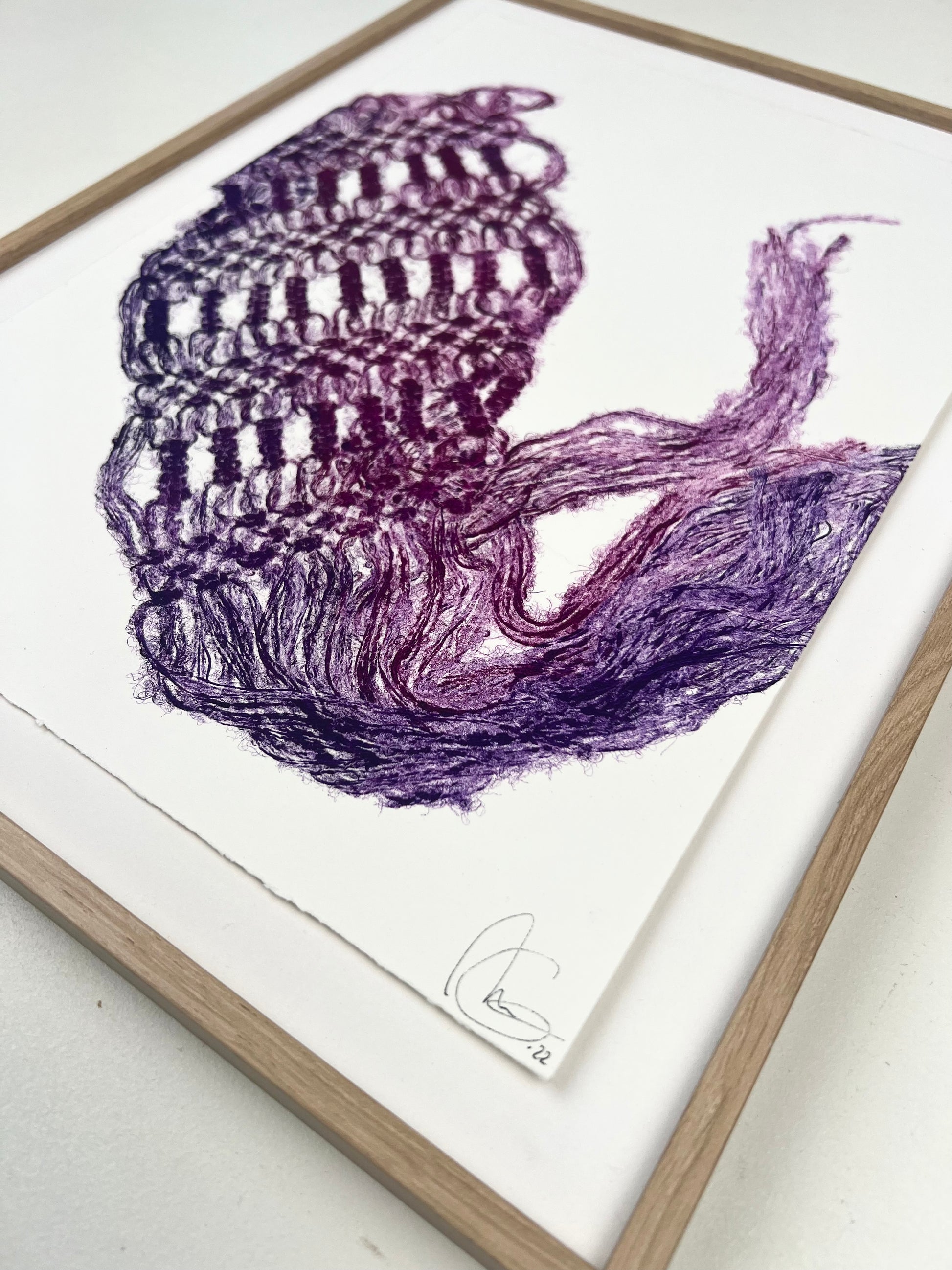Estampe d'une matrice en fibres de laine nouées enduite de plusieurs encres d’impression et passée sous presse sur un papier Fabriano ivoire de 300g