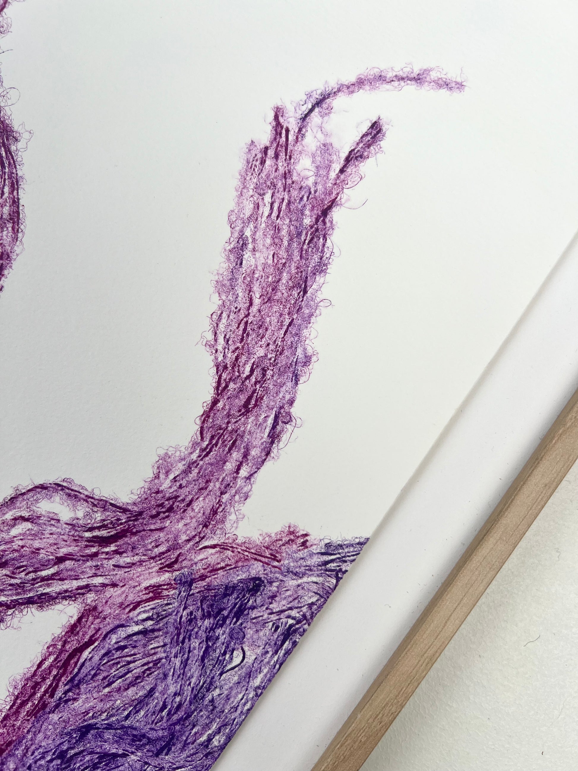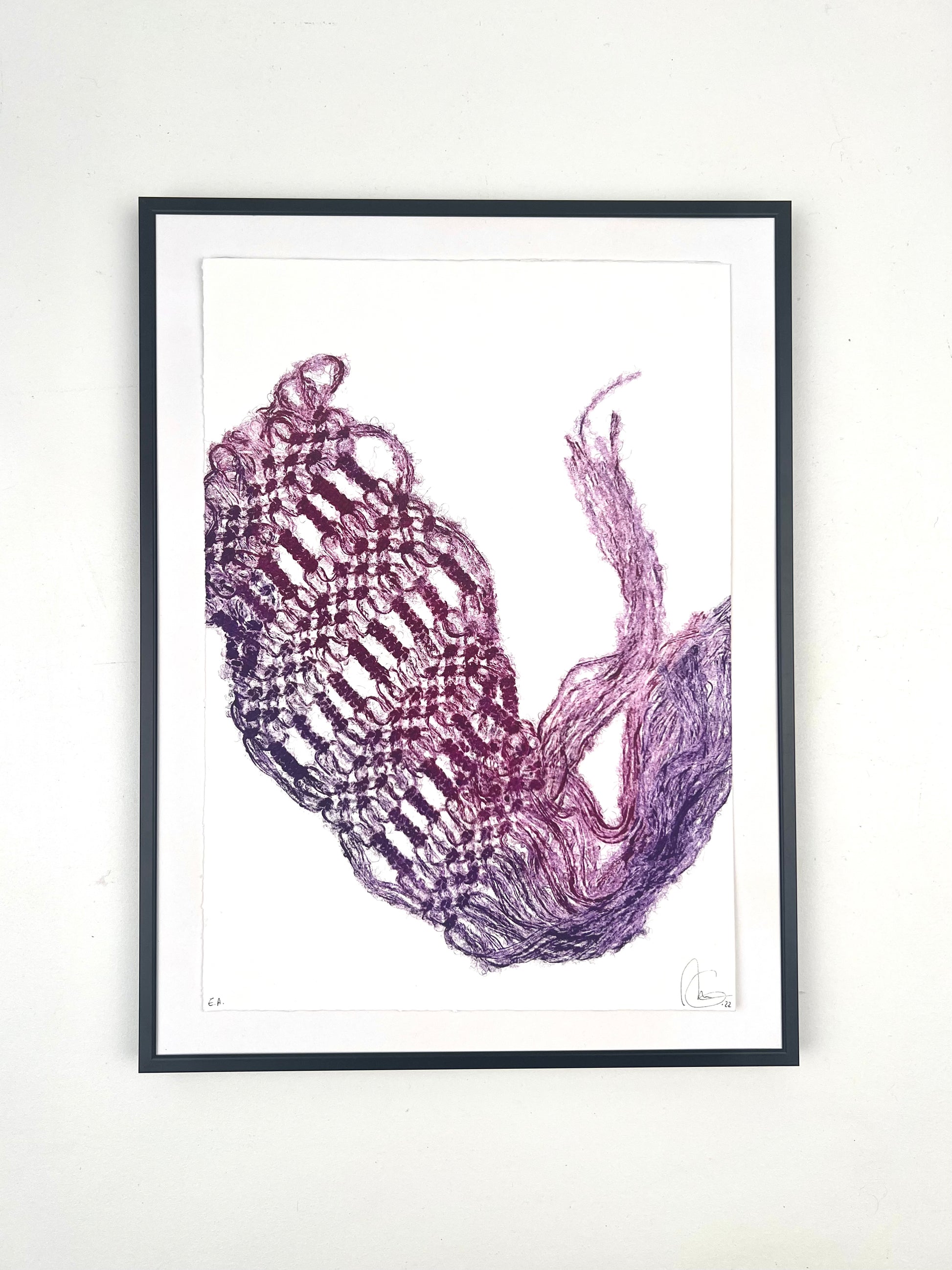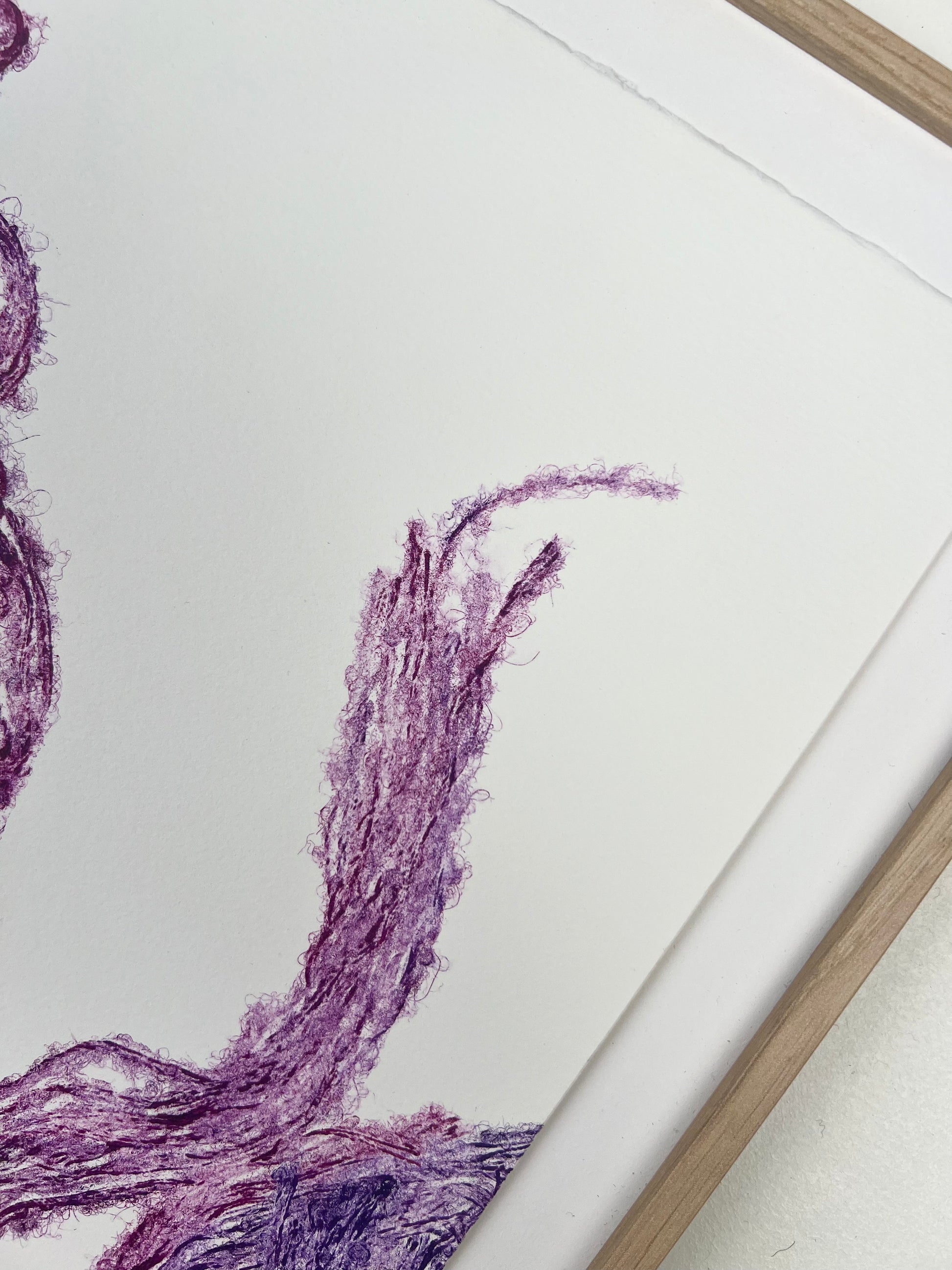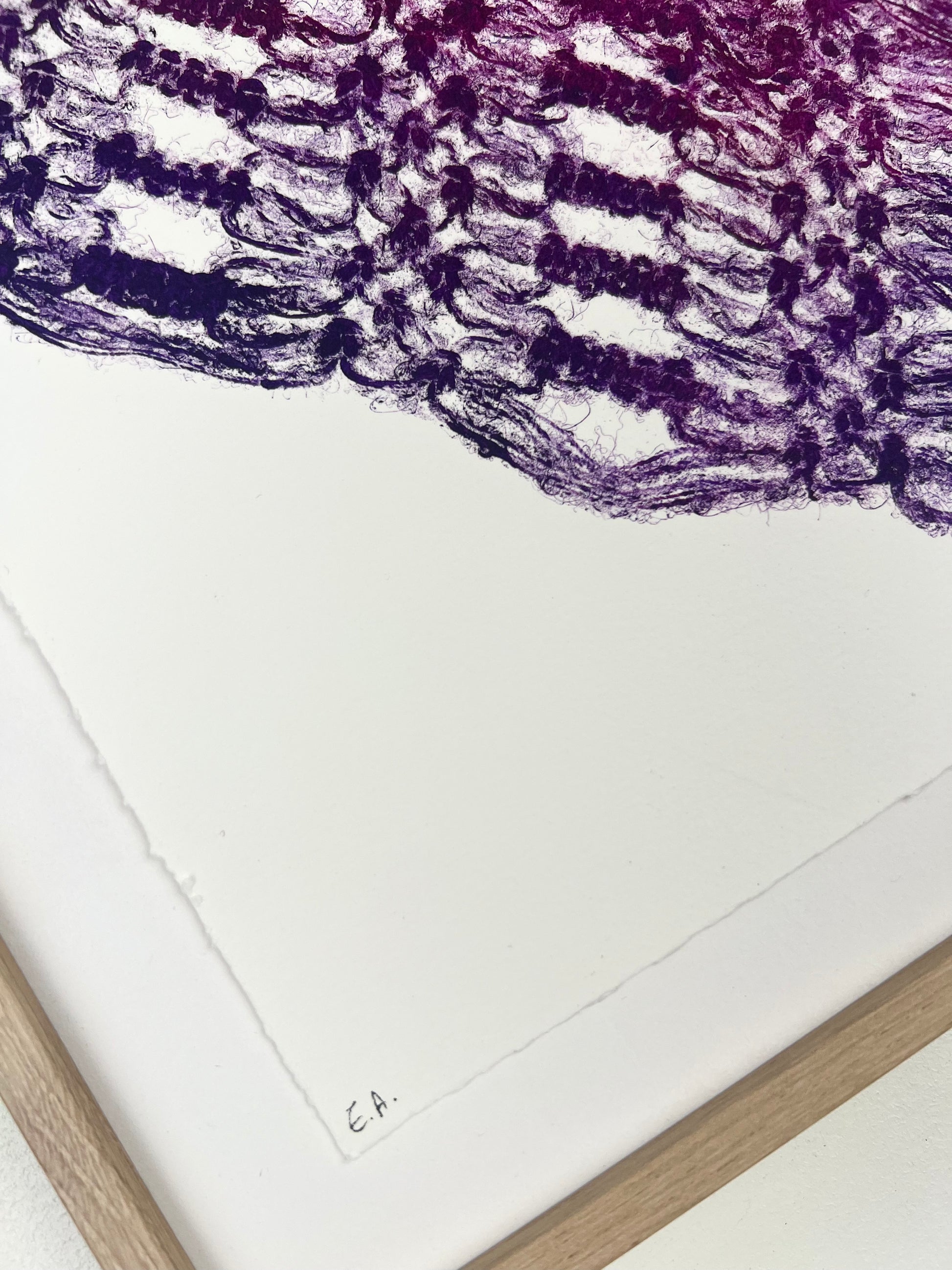 Estampe d'une matrice en fibres de laine nouées enduite de plusieurs encres d’impression et passée sous presse sur un papier Fabriano ivoire de 300g