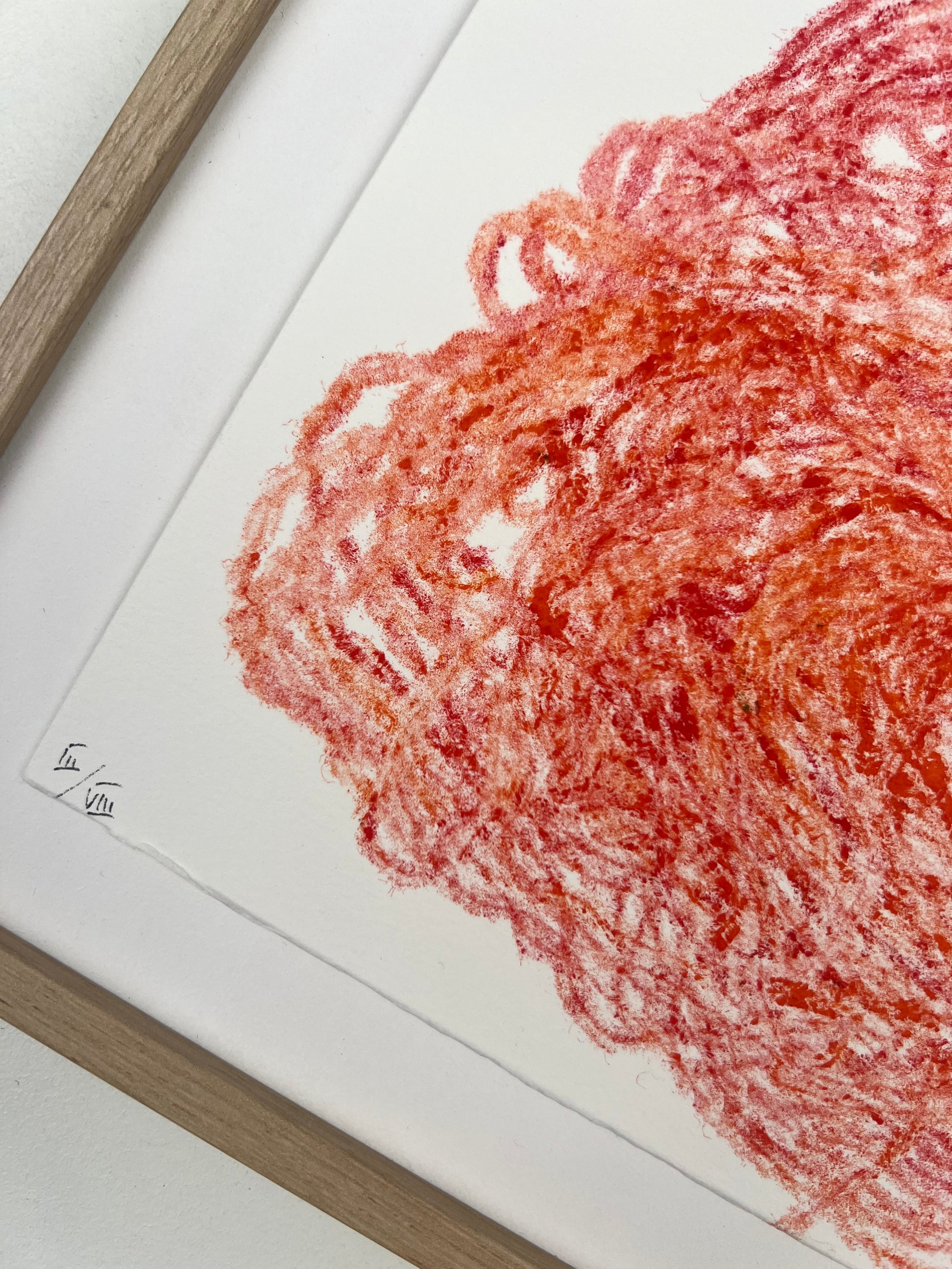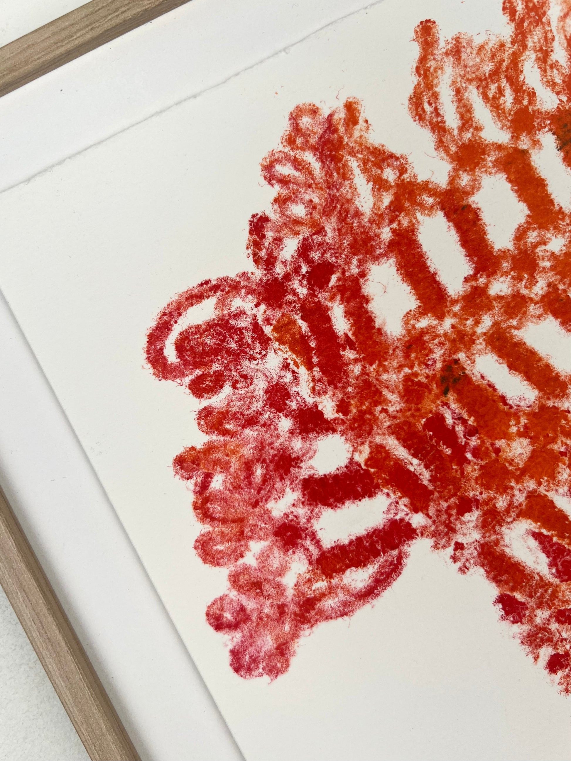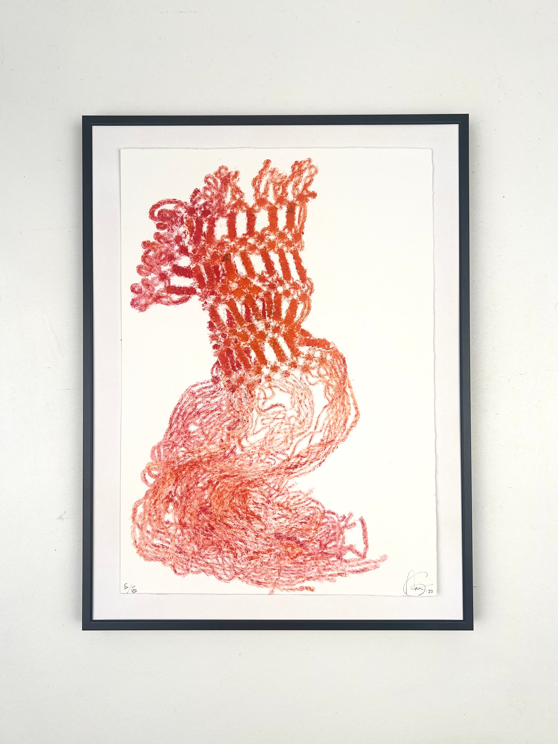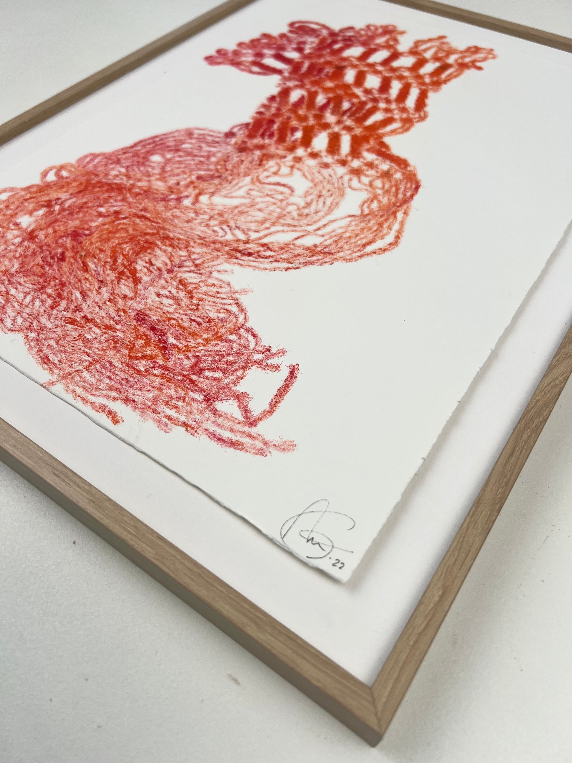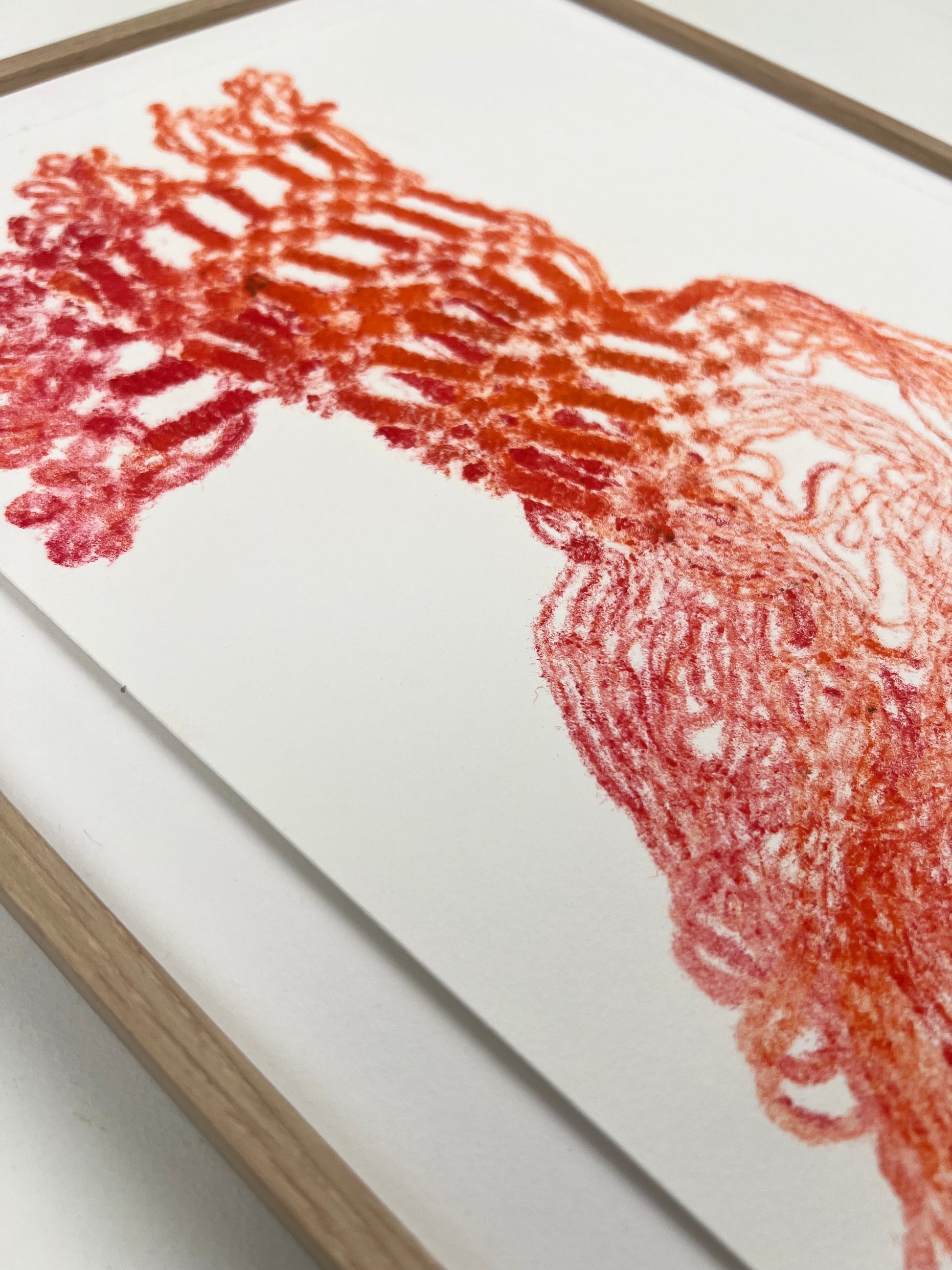 Estampe d'une matrice en fibres de laine nouées enduite de plusieurs encres d’impression et passée sous presse sur un papier Fabriano ivoire de 300g