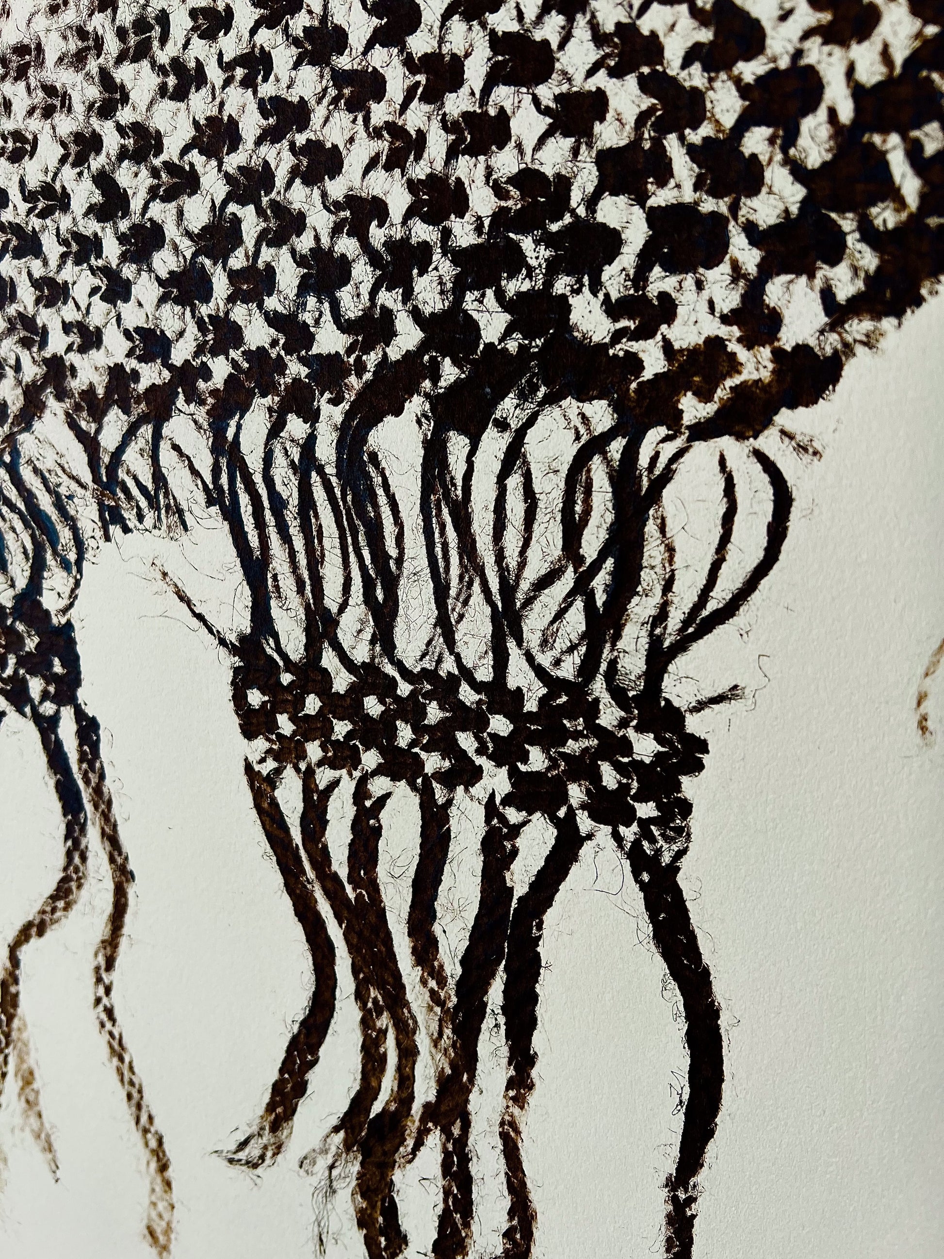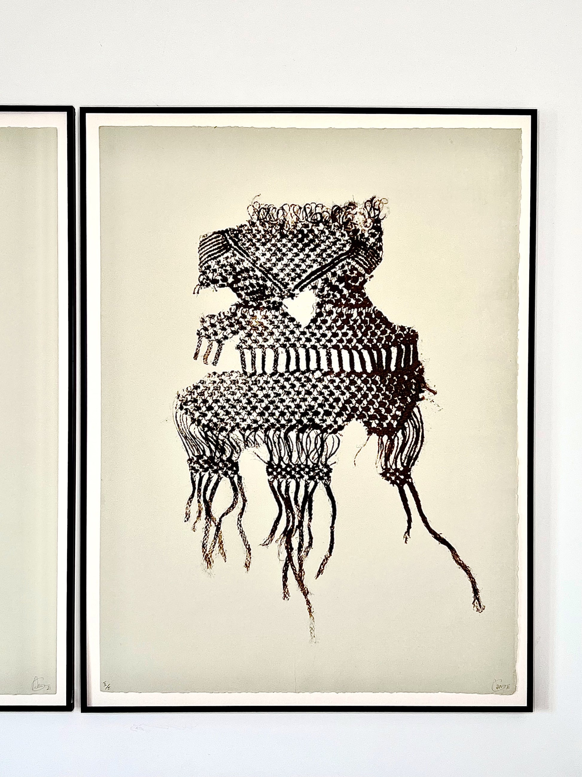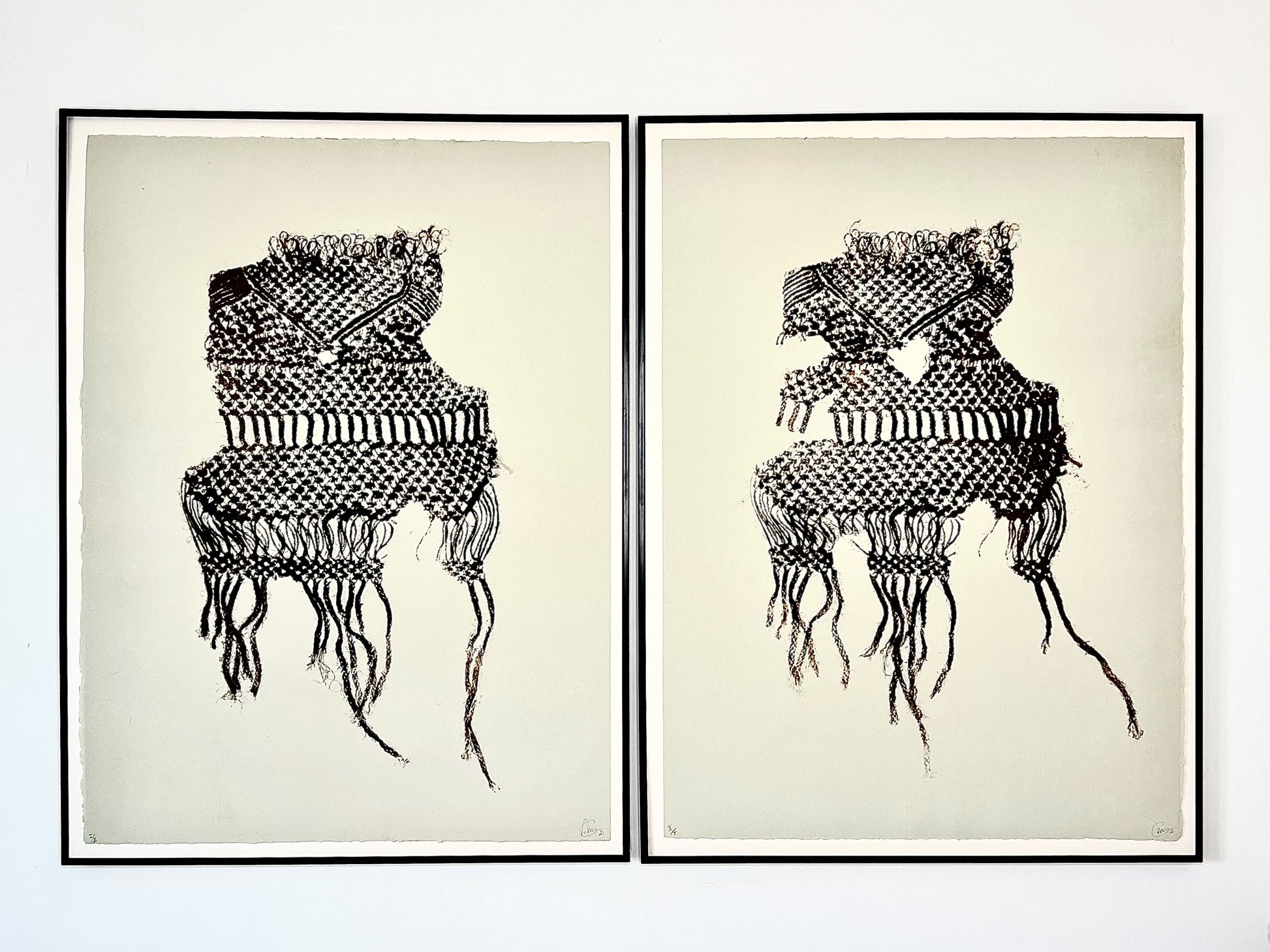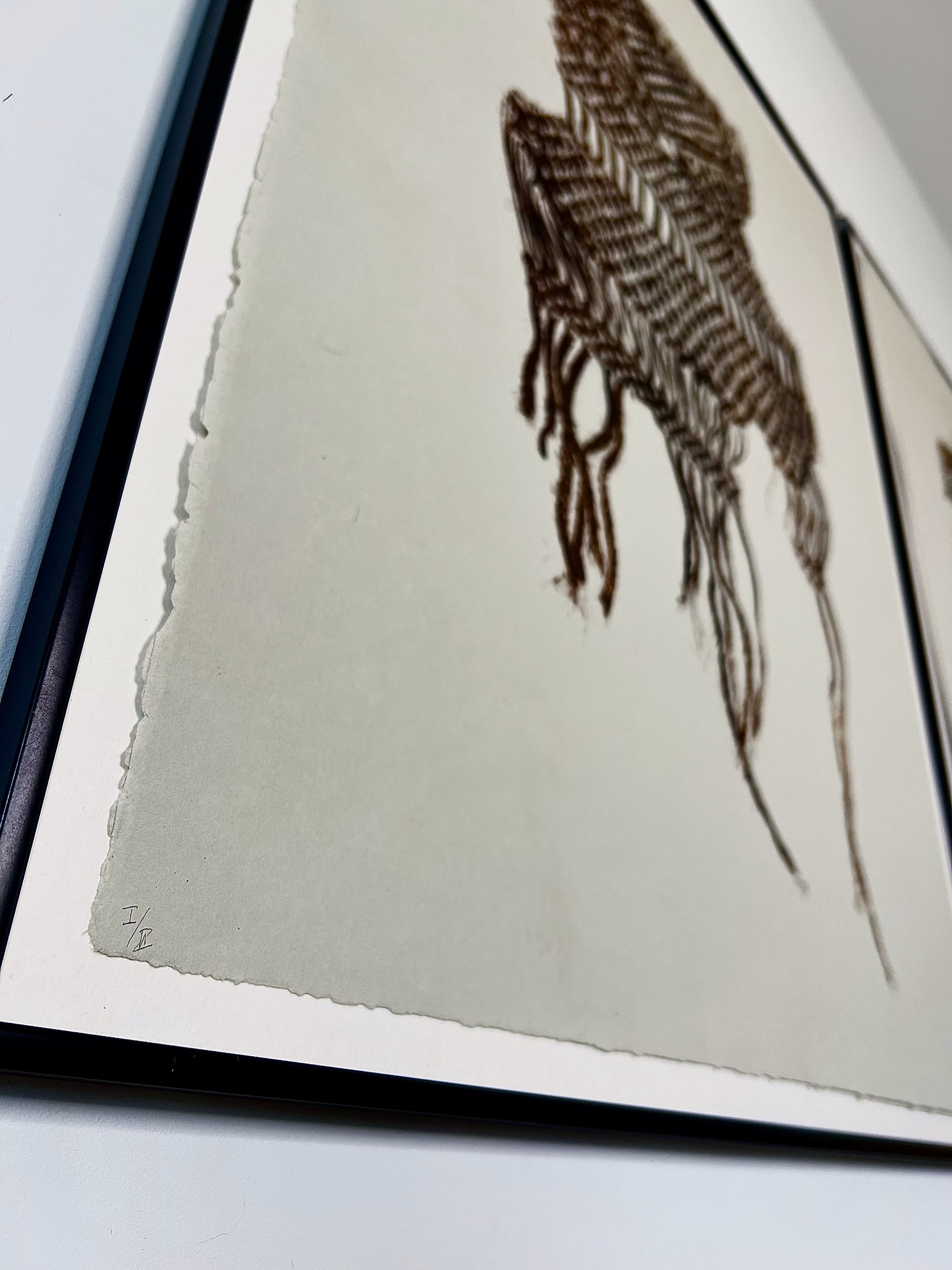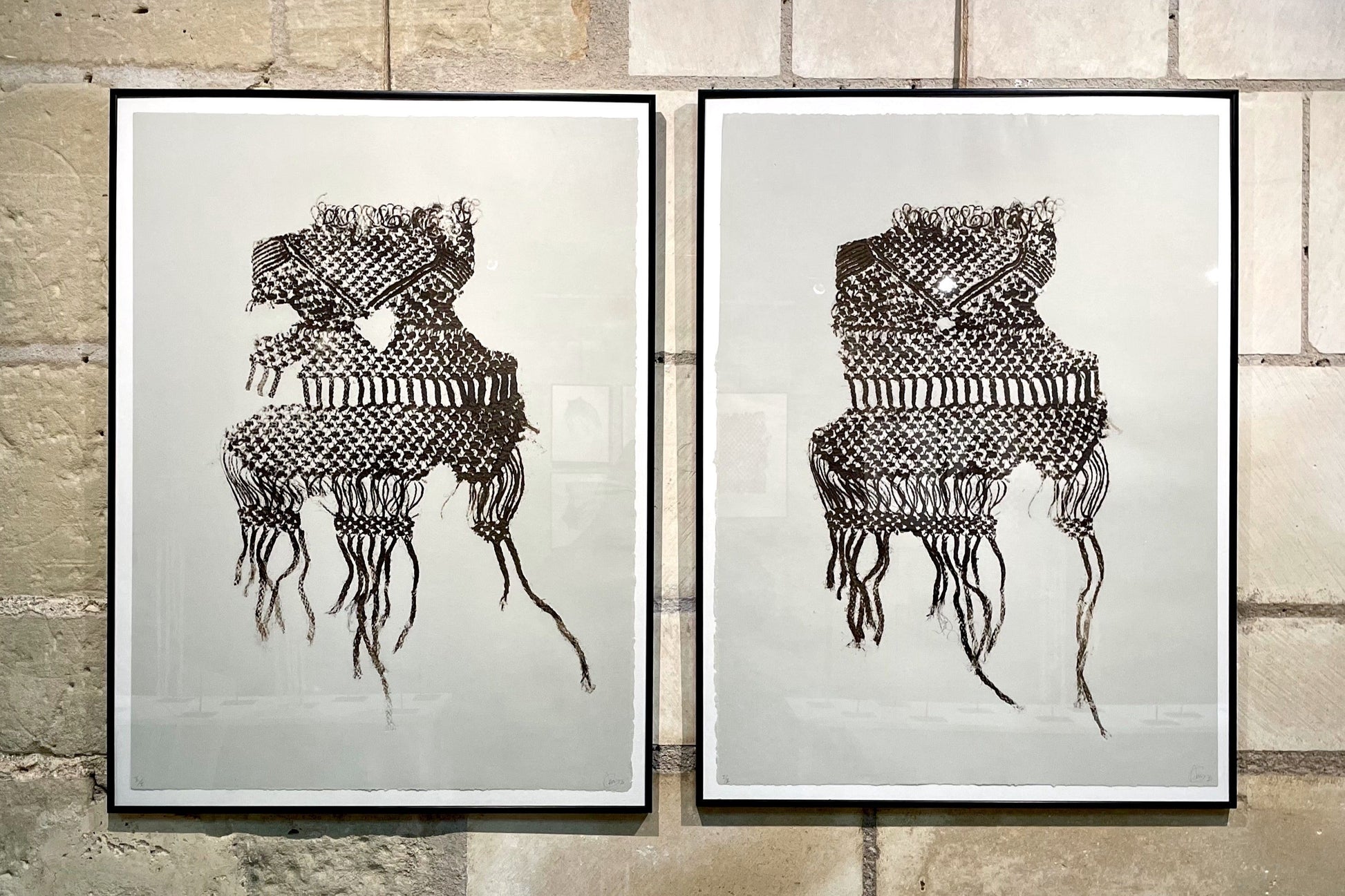 Diptyque d'estampes d’une matrice en fibres de jute nouées enduite d’une encre d’impression et passée sous presse sur un papier BFK Rives France de 250g