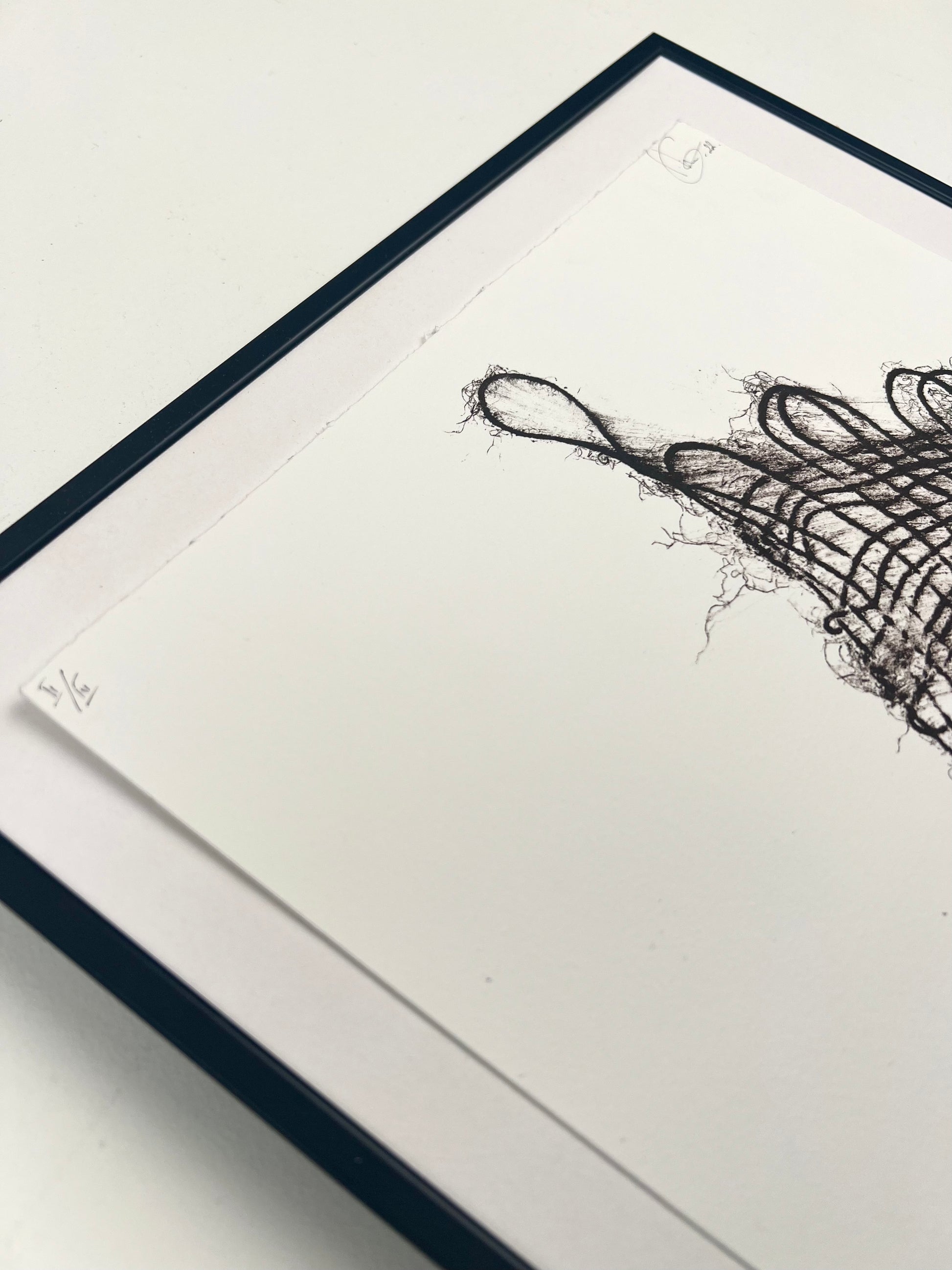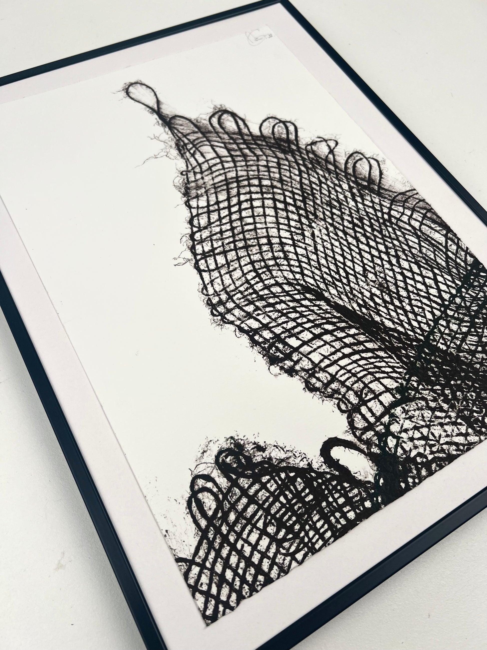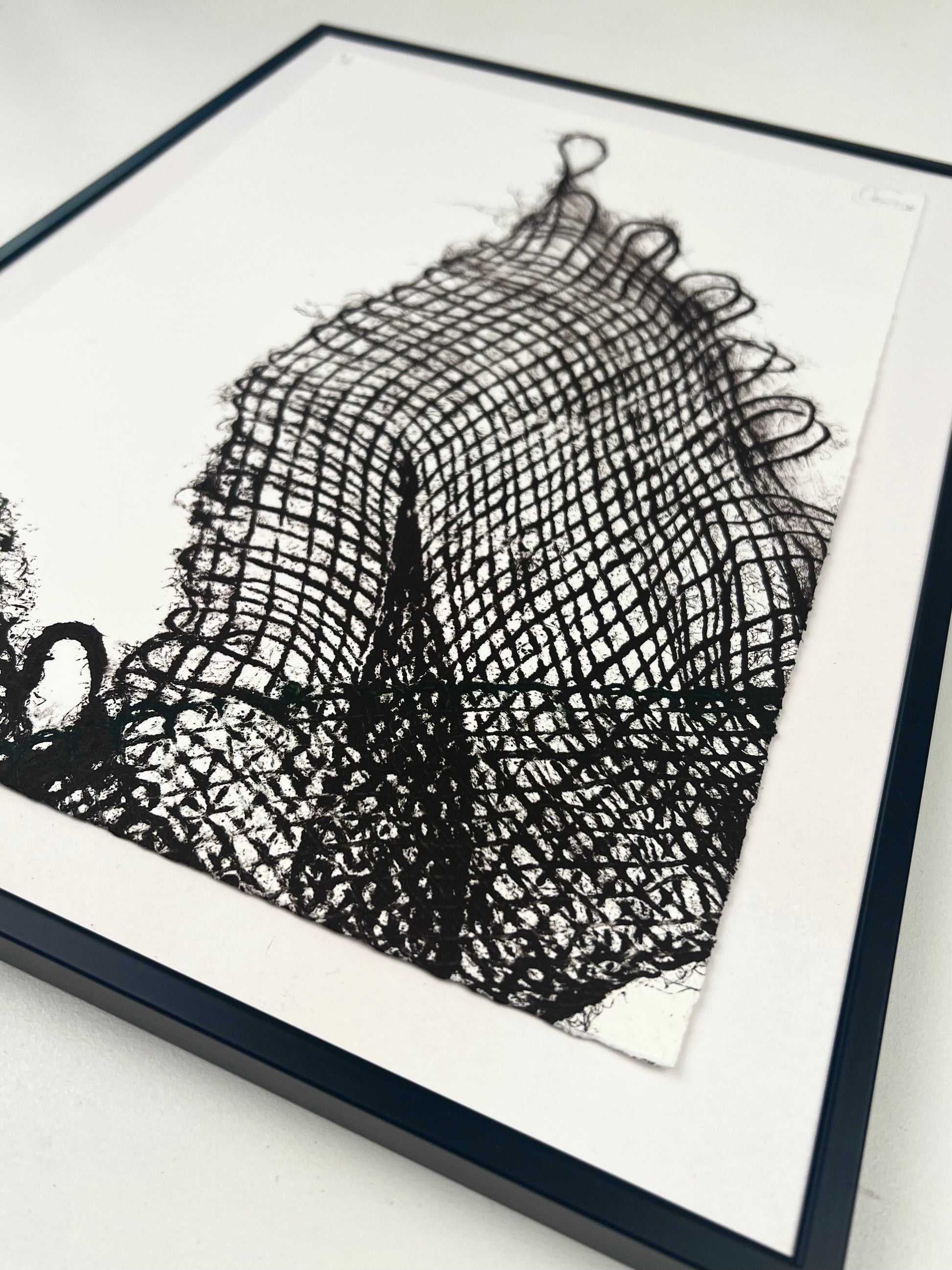 Estampes d'une matrice en fibres de jute tissée enduite d’encre d’impression et passée sous presse sur un papier Fabriano Rosaspina de 280g
